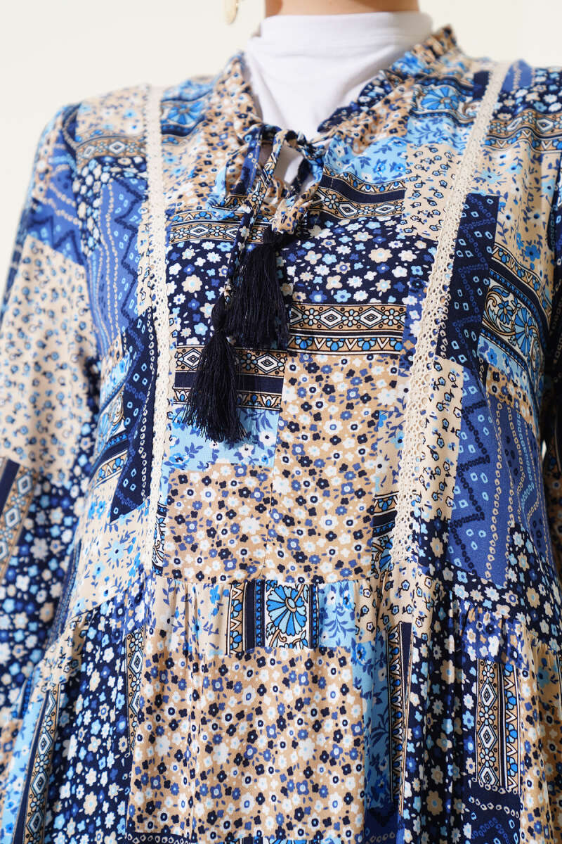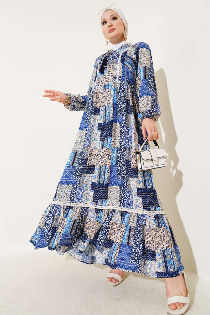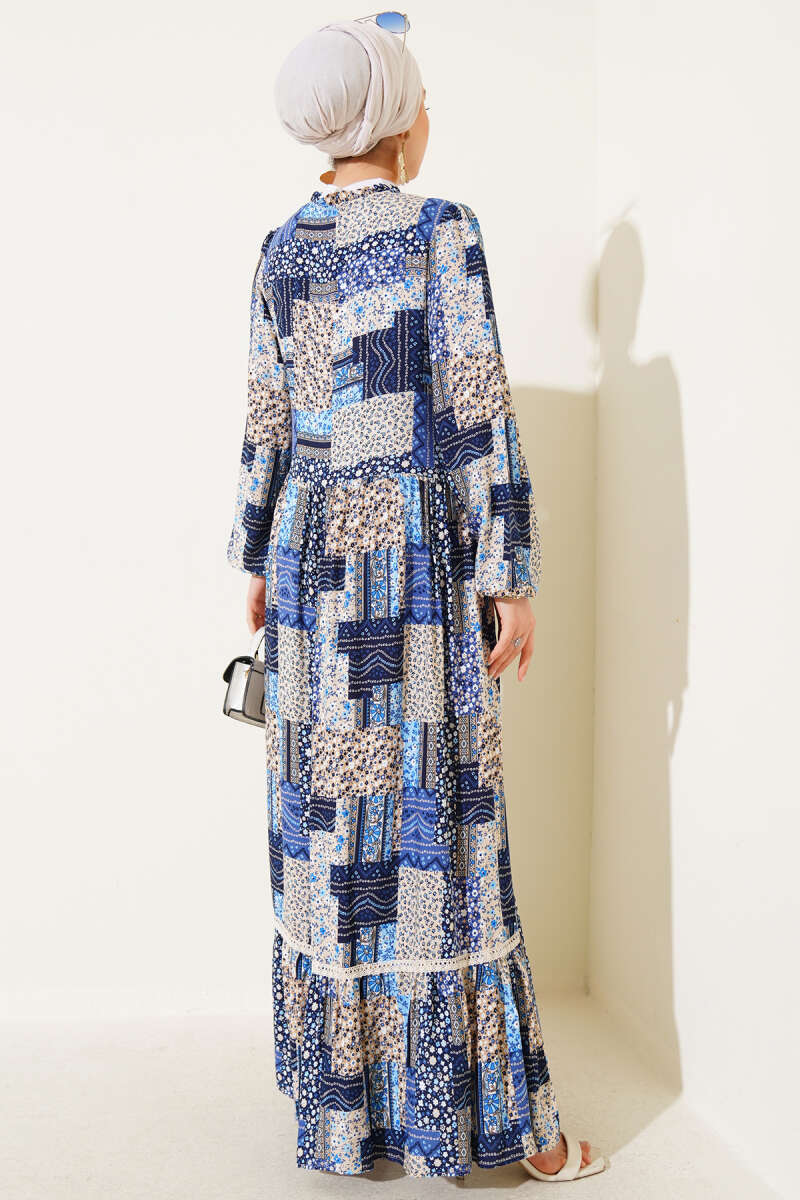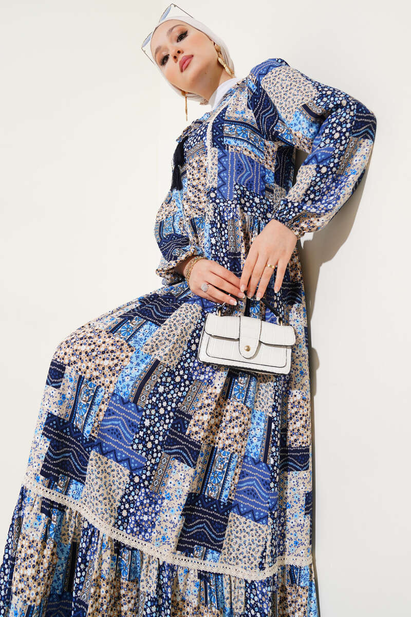 Çiçek Motifli Tül Pelerinli Abiye Elbise Bebe Mavi