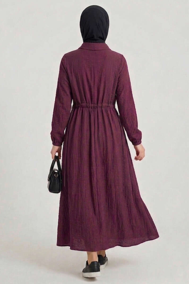 Bel Lastikli Metal Düğmeli Elbise Lila