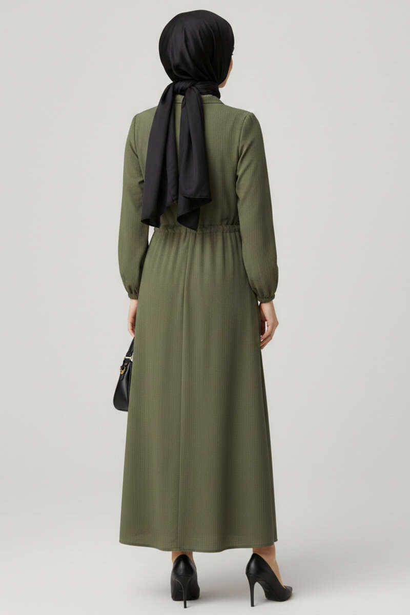 Mini Taşlı Beli Lastikli Elbise Haki