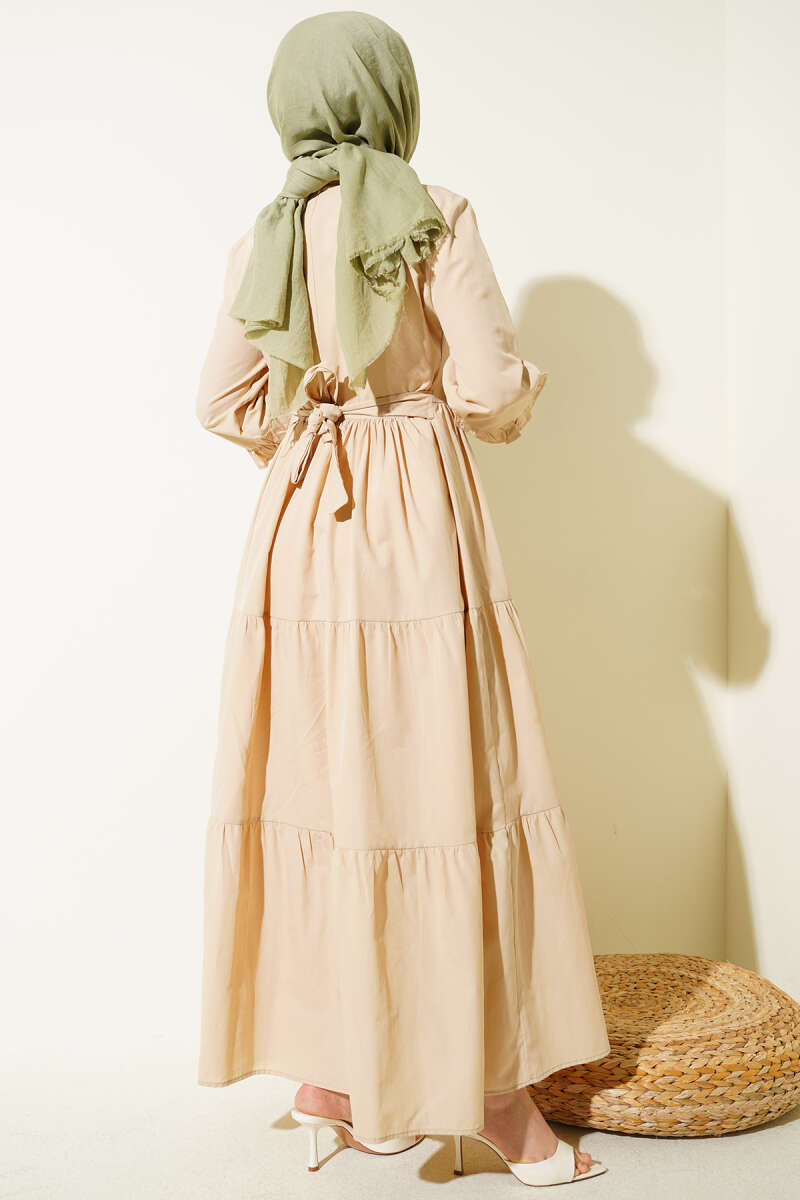 Drapeli Kol Ucu Bağlamalı Abiye Elbise Bej
