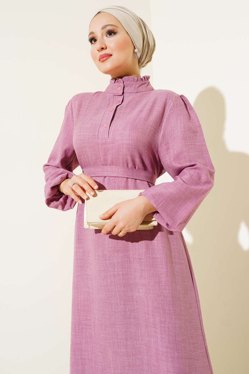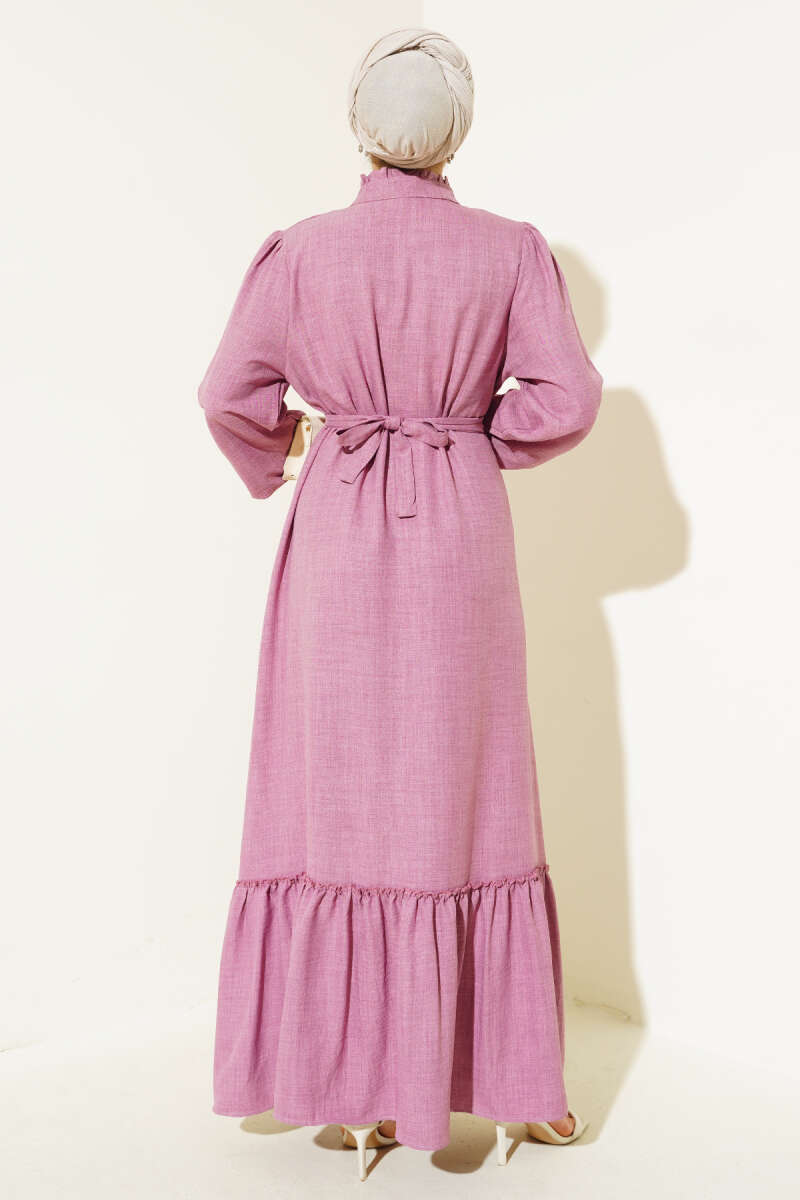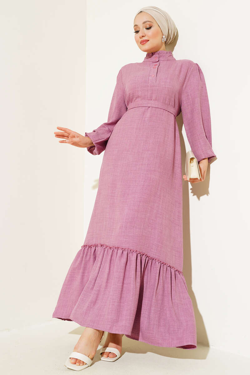 Önü Düğmeli Kat Kat Basic Elbise Vizon