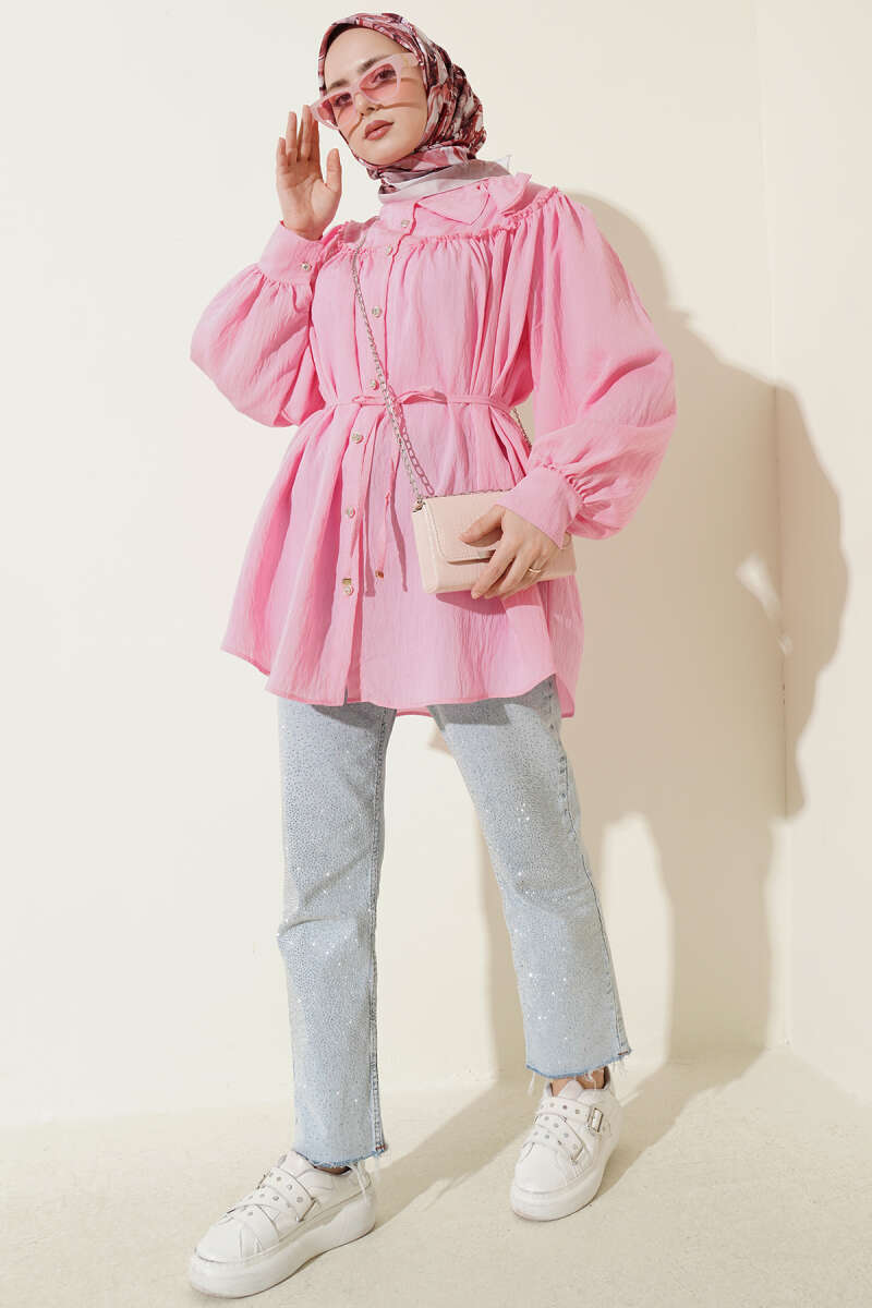 Önü Pileli İp Kuşaklı Tunik Bordo