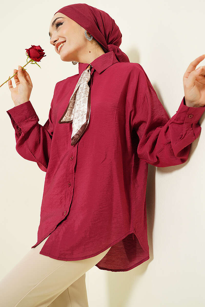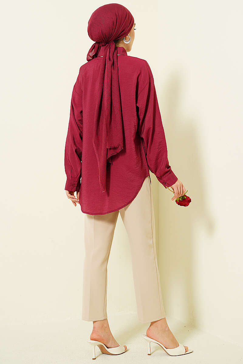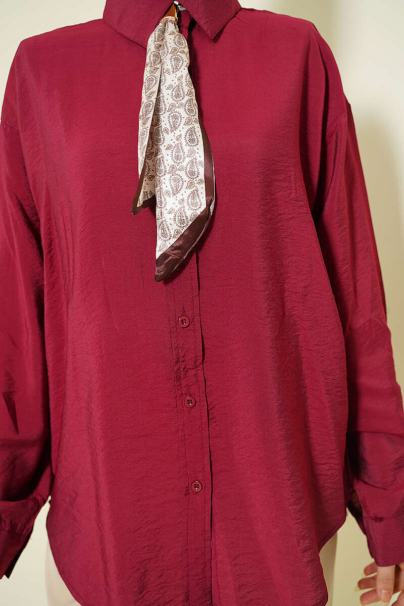 Yakası Bağlamalı Salaş Gömlek Bordo