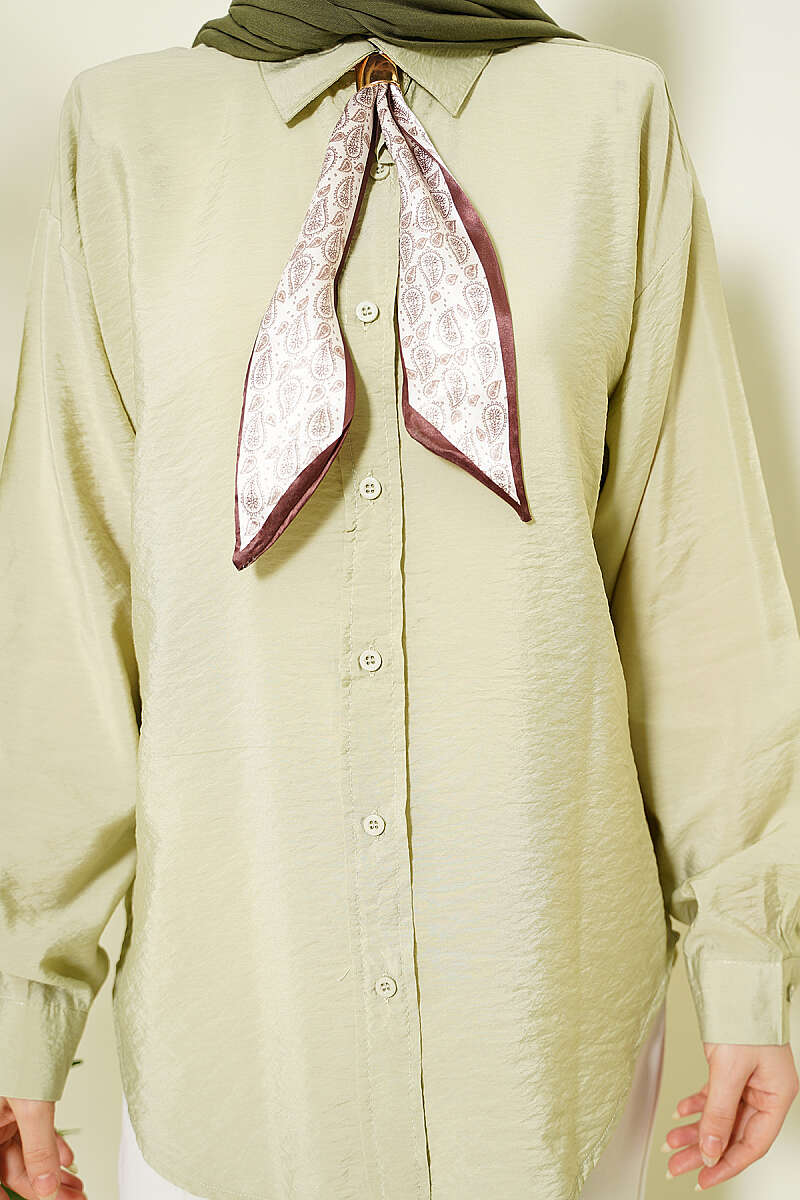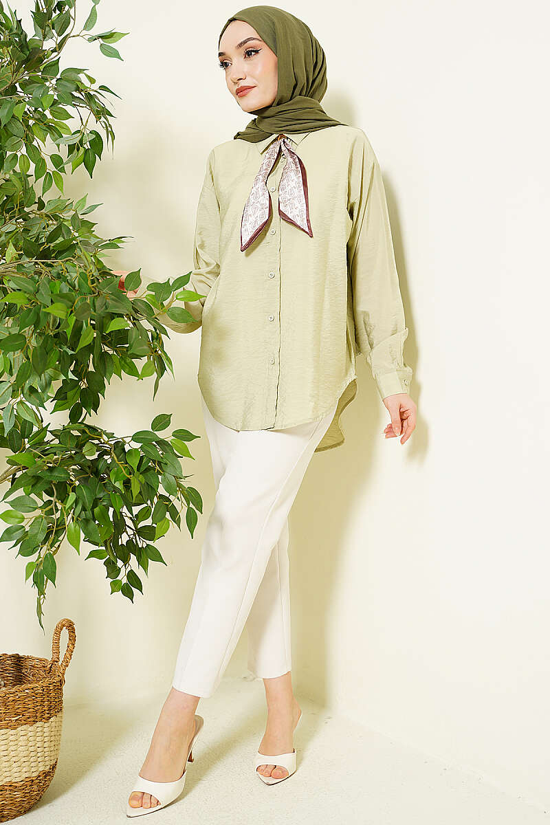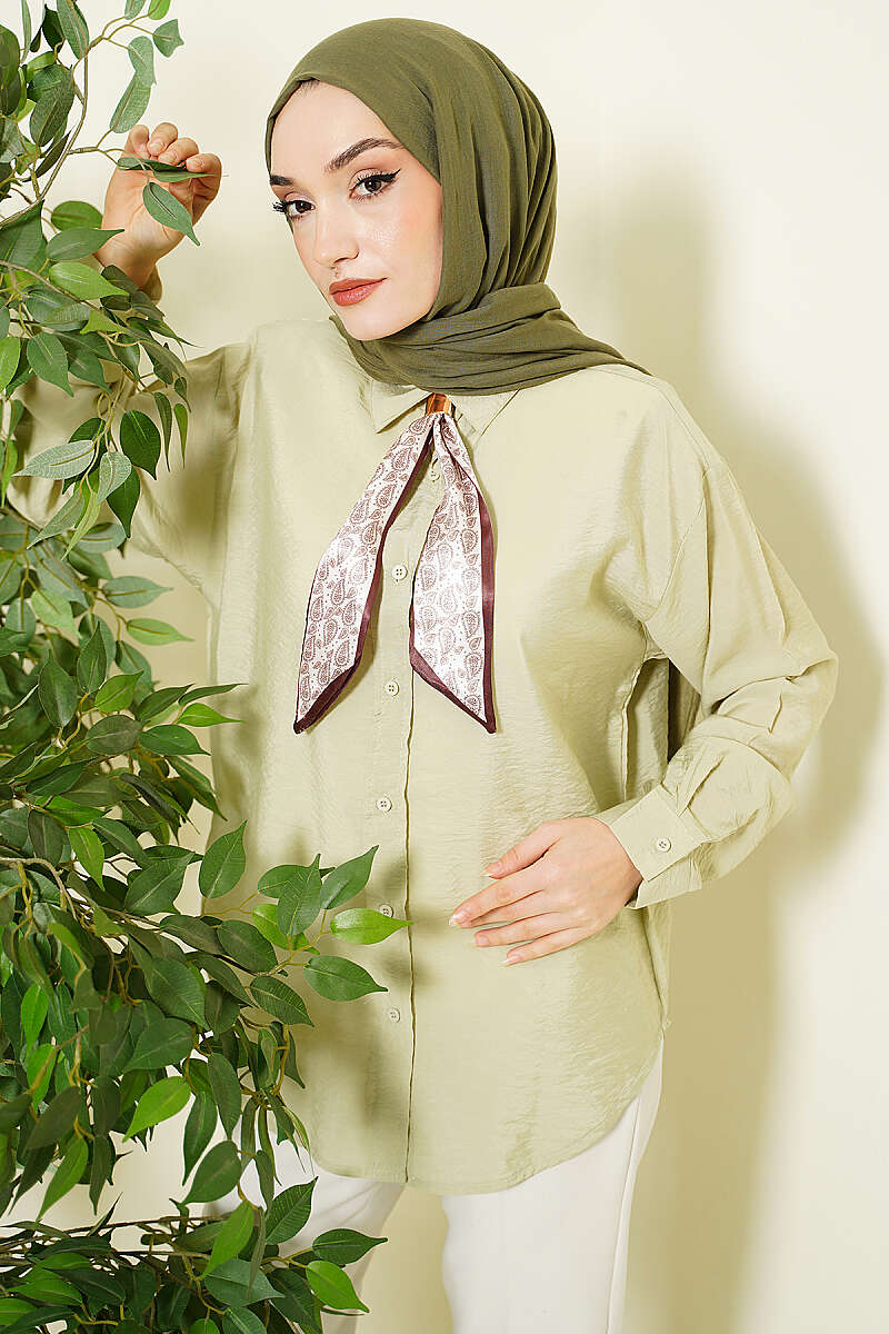 Yaka Fularlı Basic Gömlek Çağla Yeşili