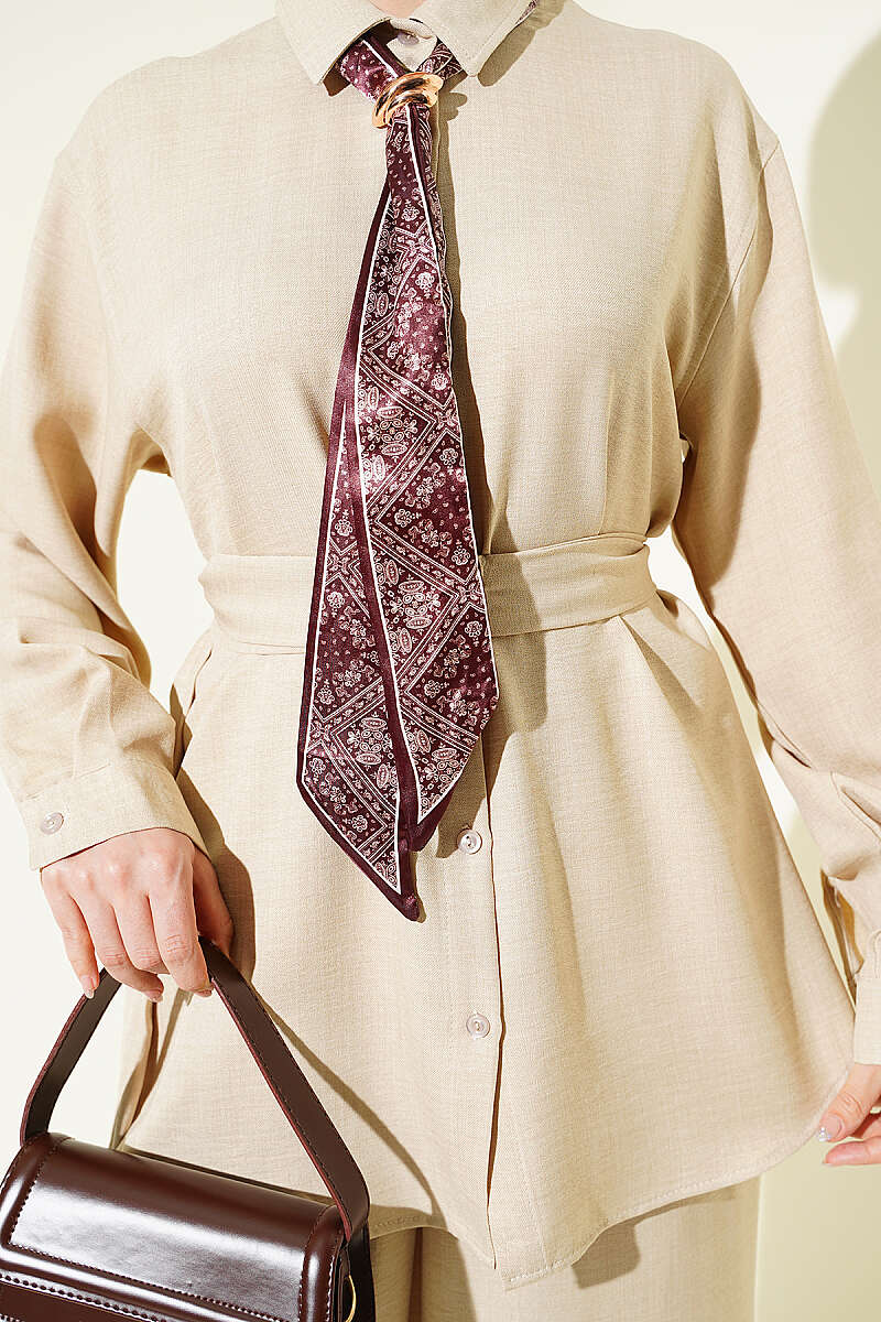 Yaka Fularlı Kuşaklı Salaş İkili Takım Bordo