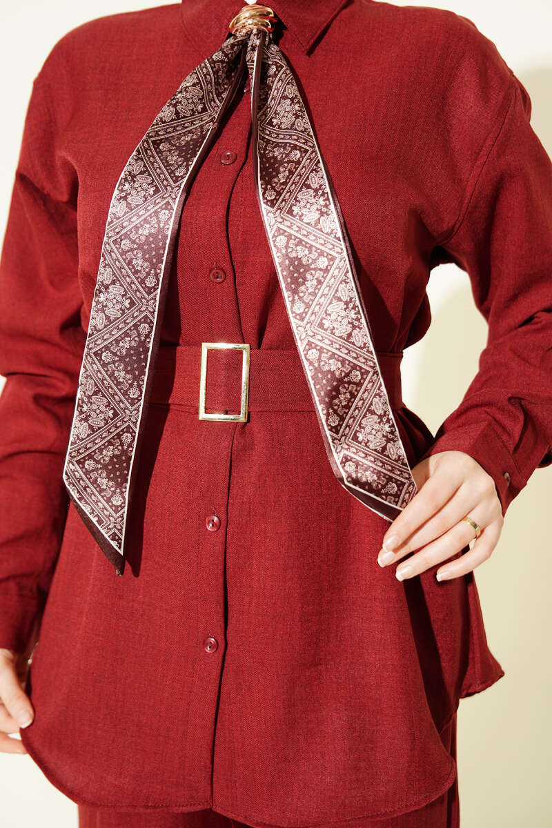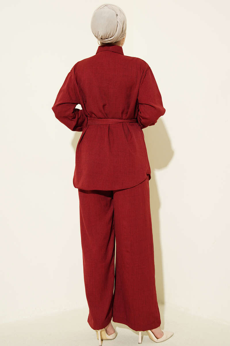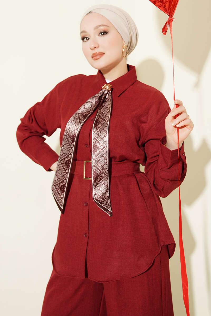 Yaka Fularlı Kuşaklı Salaş İkili Takım Bordo
