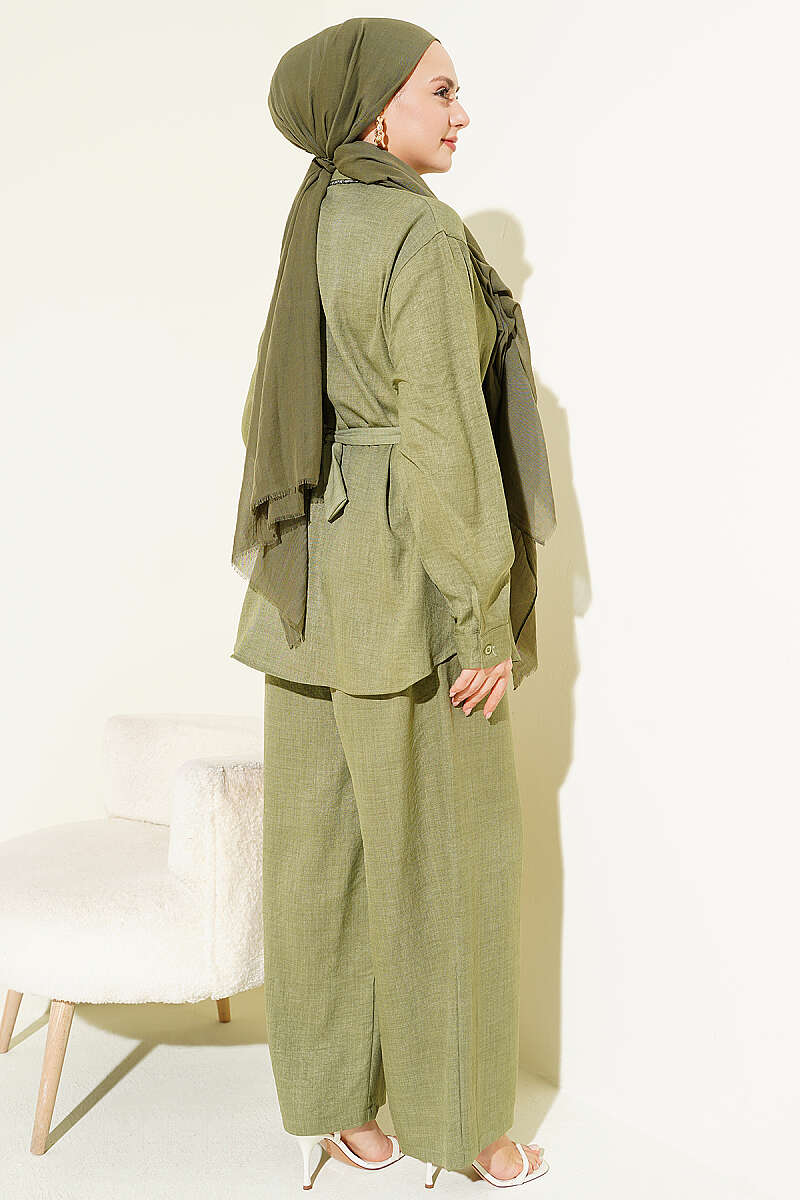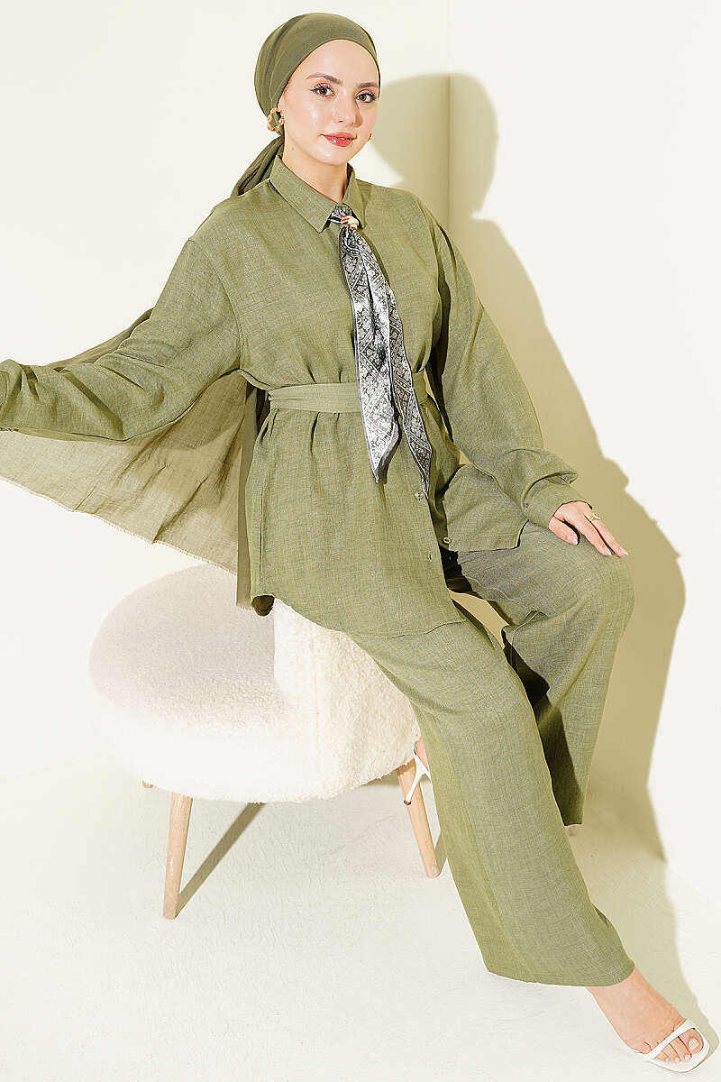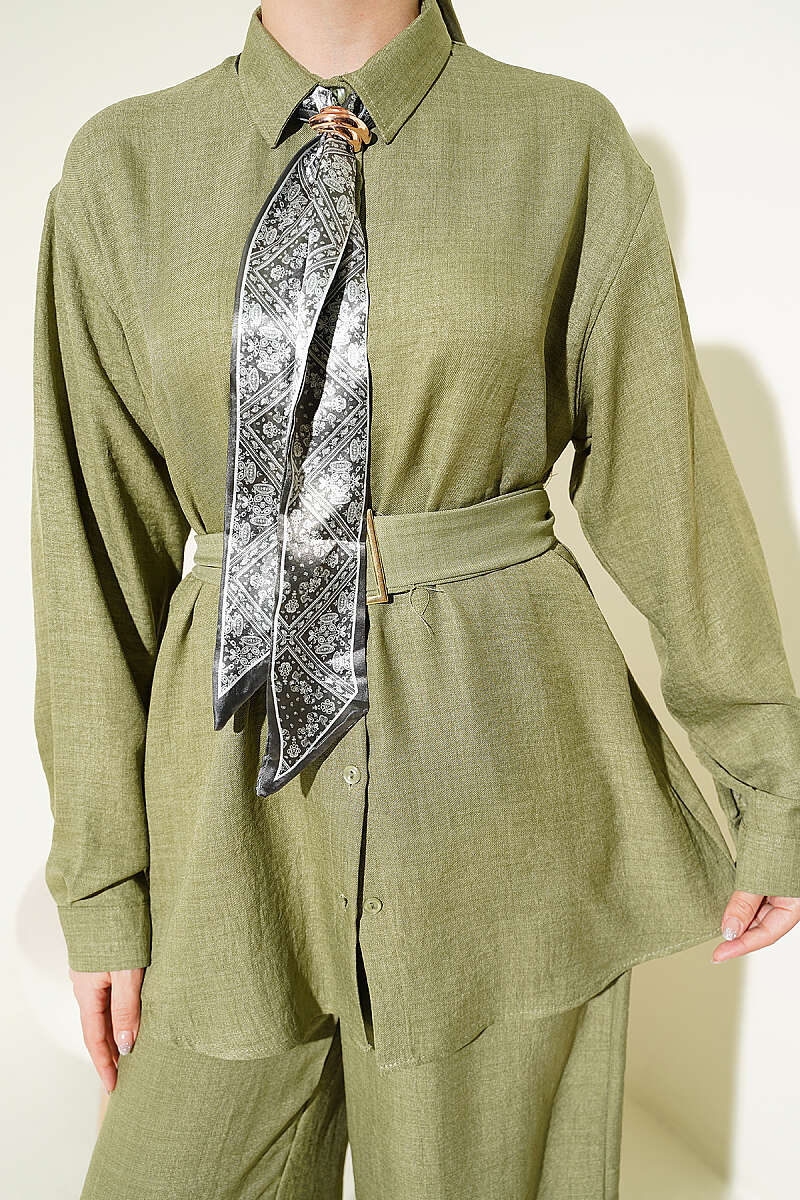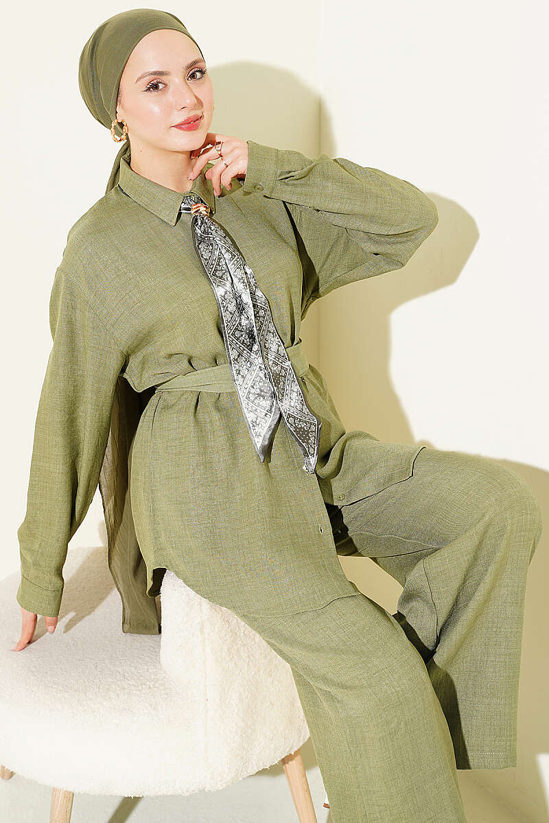 Yaka Fularlı Kuşaklı Salaş İkili Takım Çağla Yeşili