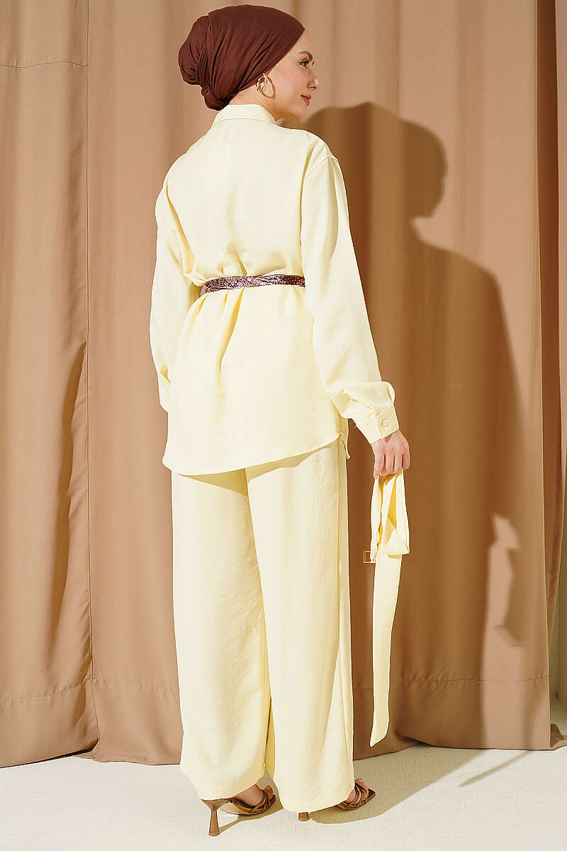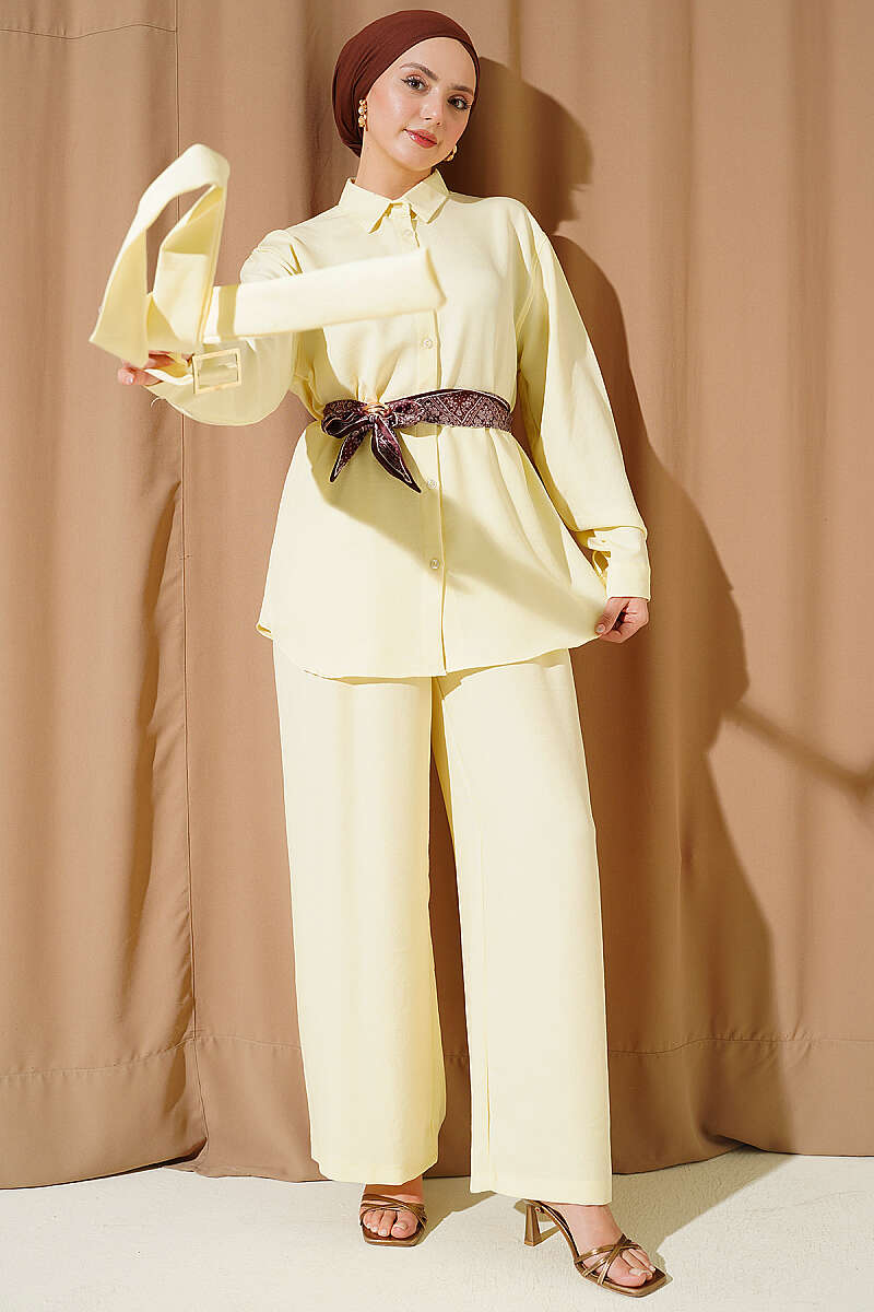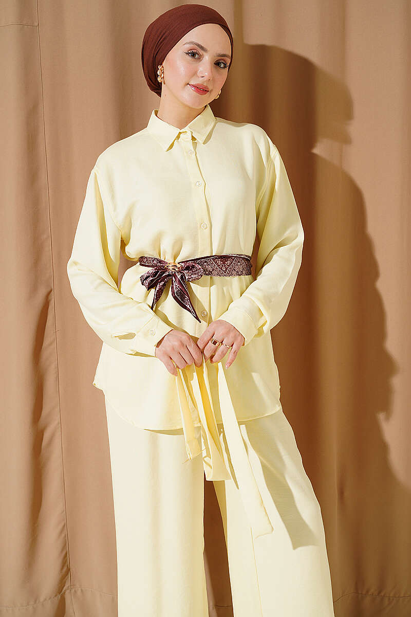 Yaka Fularlı Kuşaklı Salaş İkili Takım Sarı