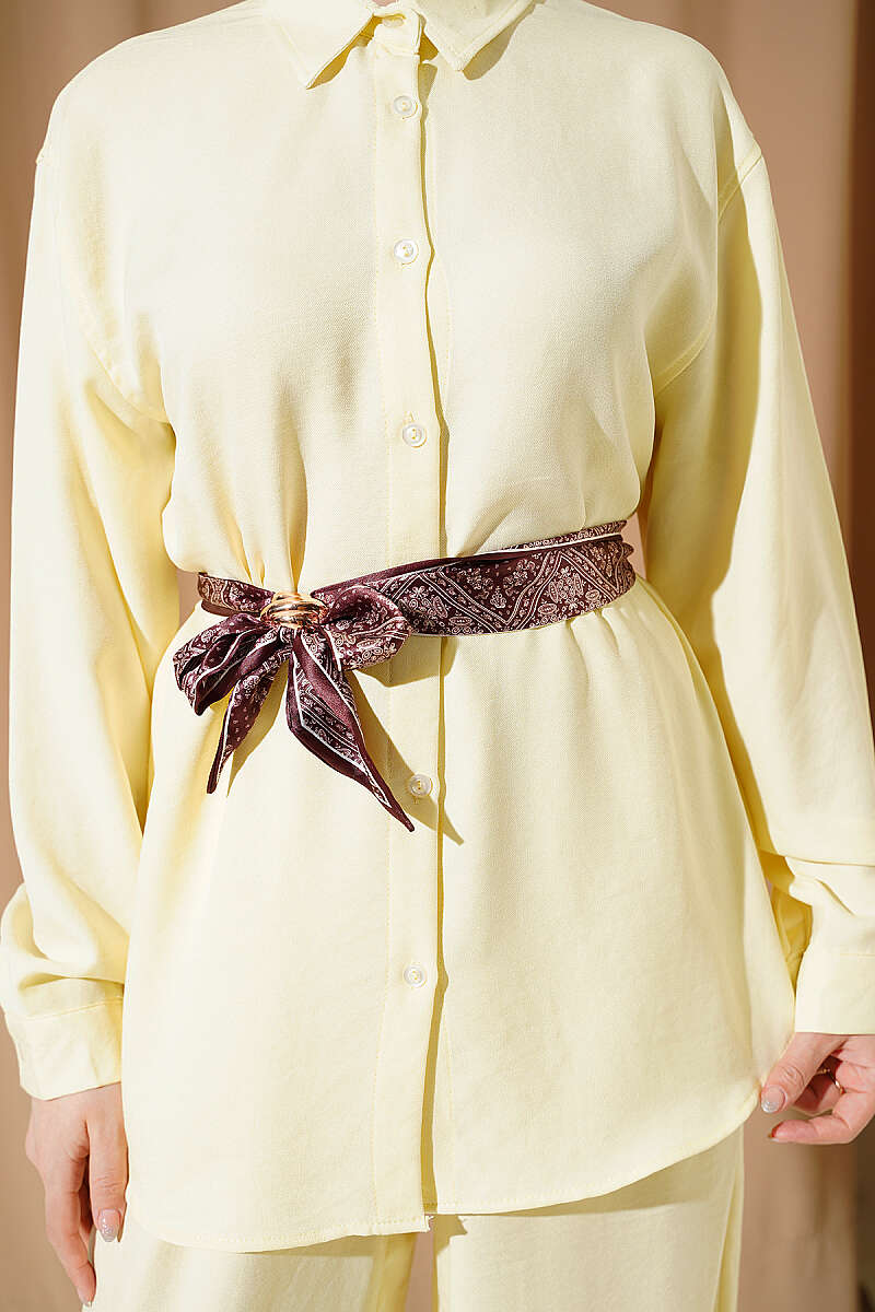 Yaka Fularlı Kuşaklı Salaş İkili Takım Bordo