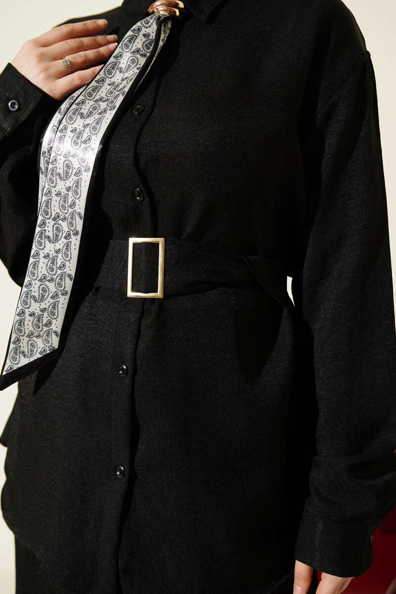 Yaka Fularlı Kuşaklı Salaş İkili Takım Siyah