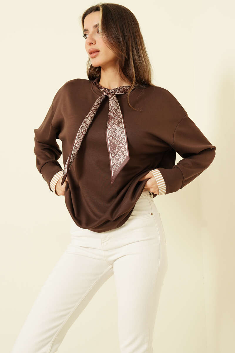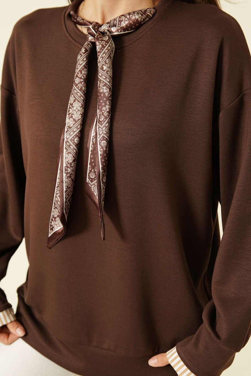 Çiçek Desenli Bambu Şal Kahve