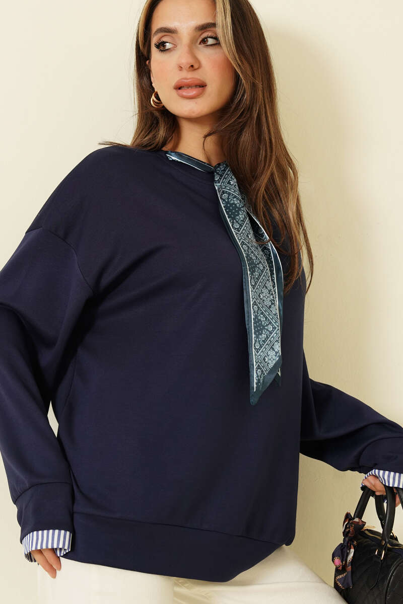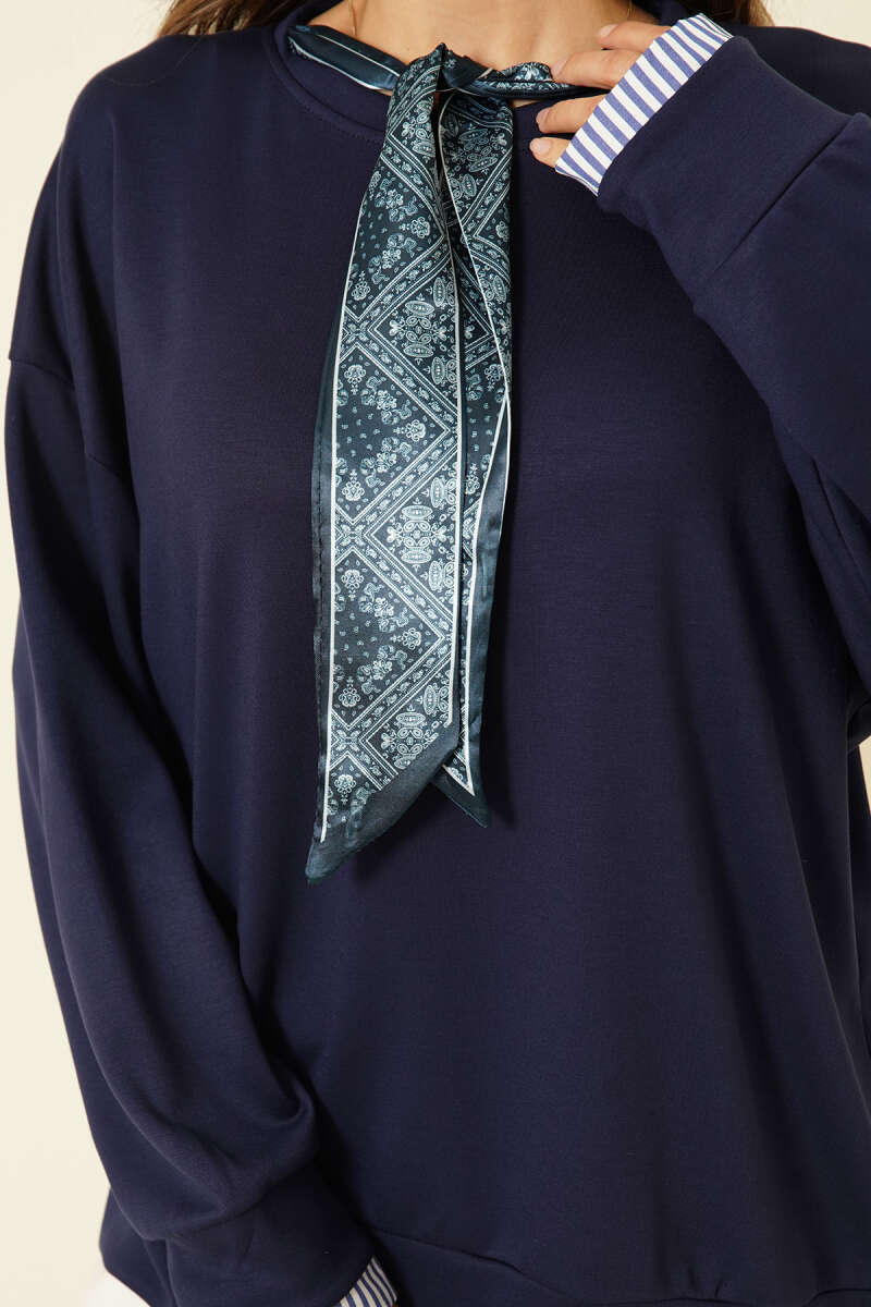 Basic Bisiklet Yaka Üç İp Sweatshirt Siyah