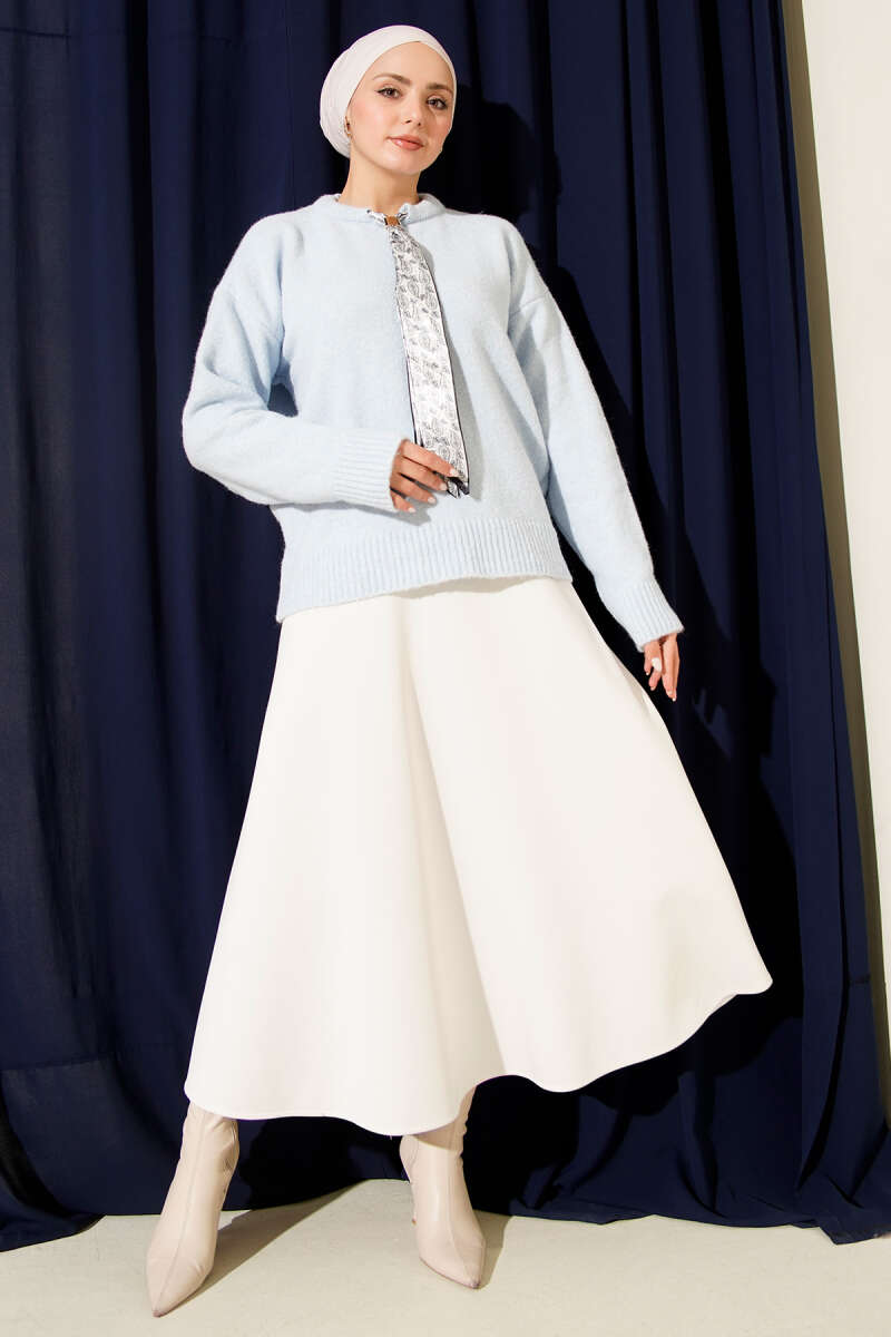Yaka Fularlı Triko Kazak Bebe Mavi