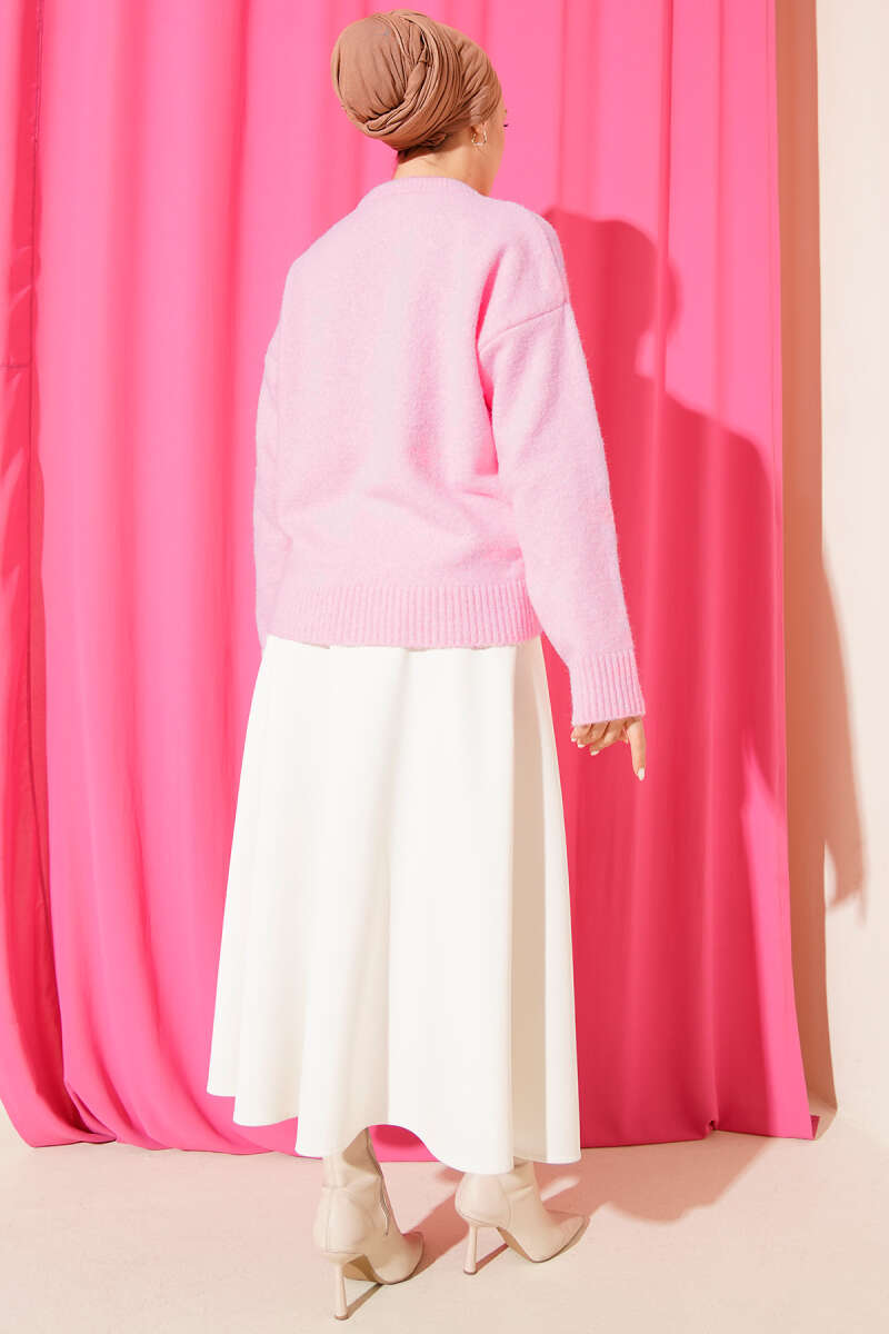 Yaka Fularlı Triko Kazak Pembe