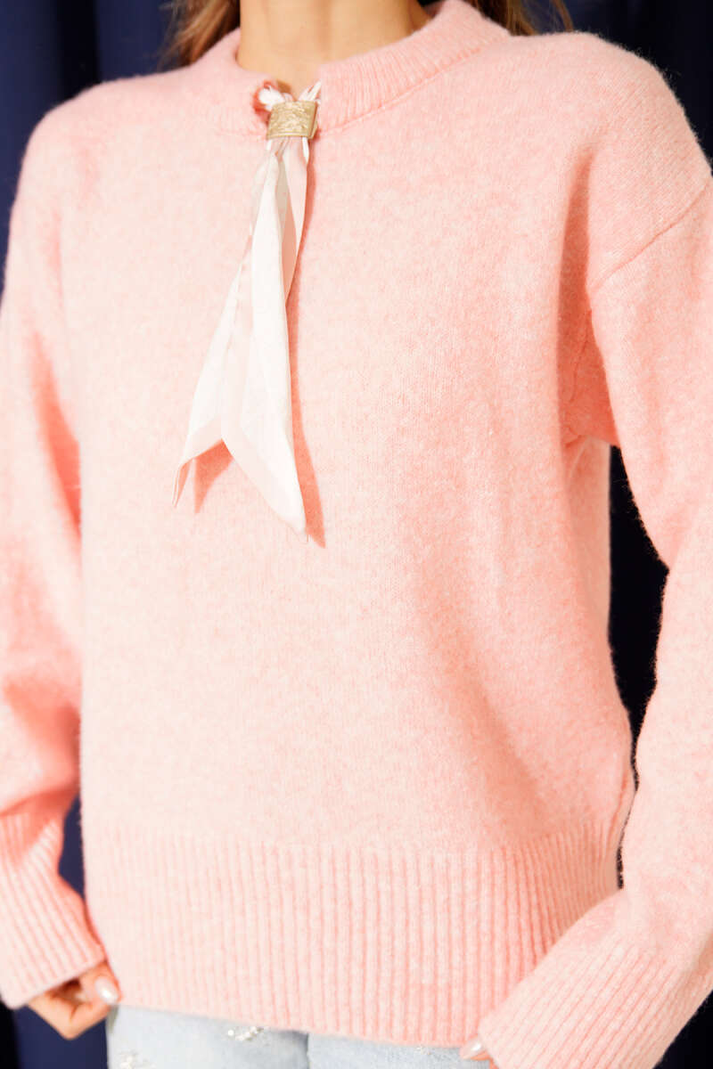 Gömlek Yaka Düğmeli Çizgili Triko Kazak Bej
