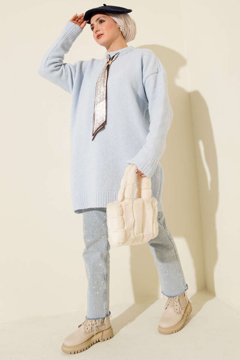 Basic Oversize Triko Tunik Bebe Mavi