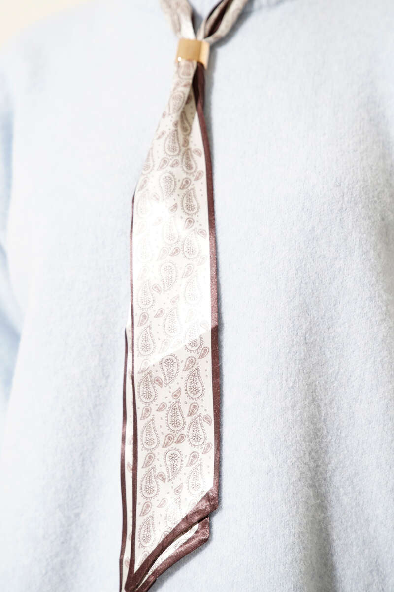 Yaka Fularlı Yumoş Triko Tunik Mor