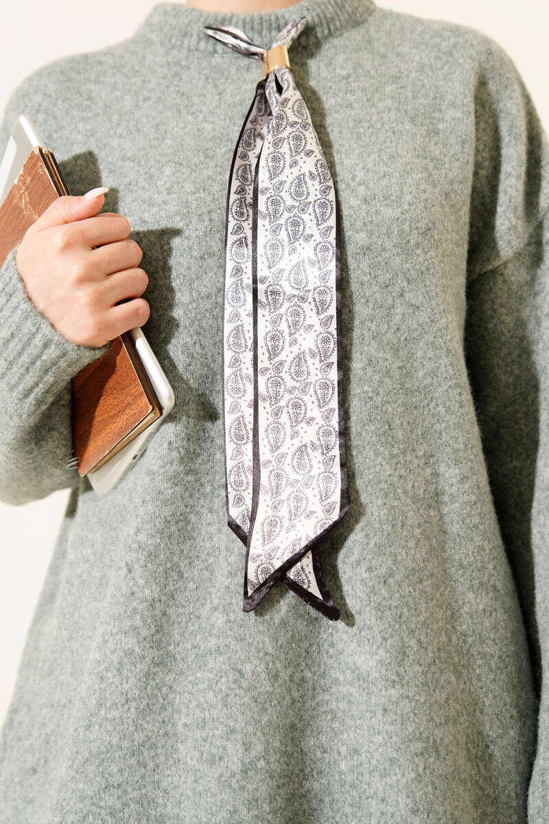Yaka Fularlı Yumoş Triko Tunik Siyah