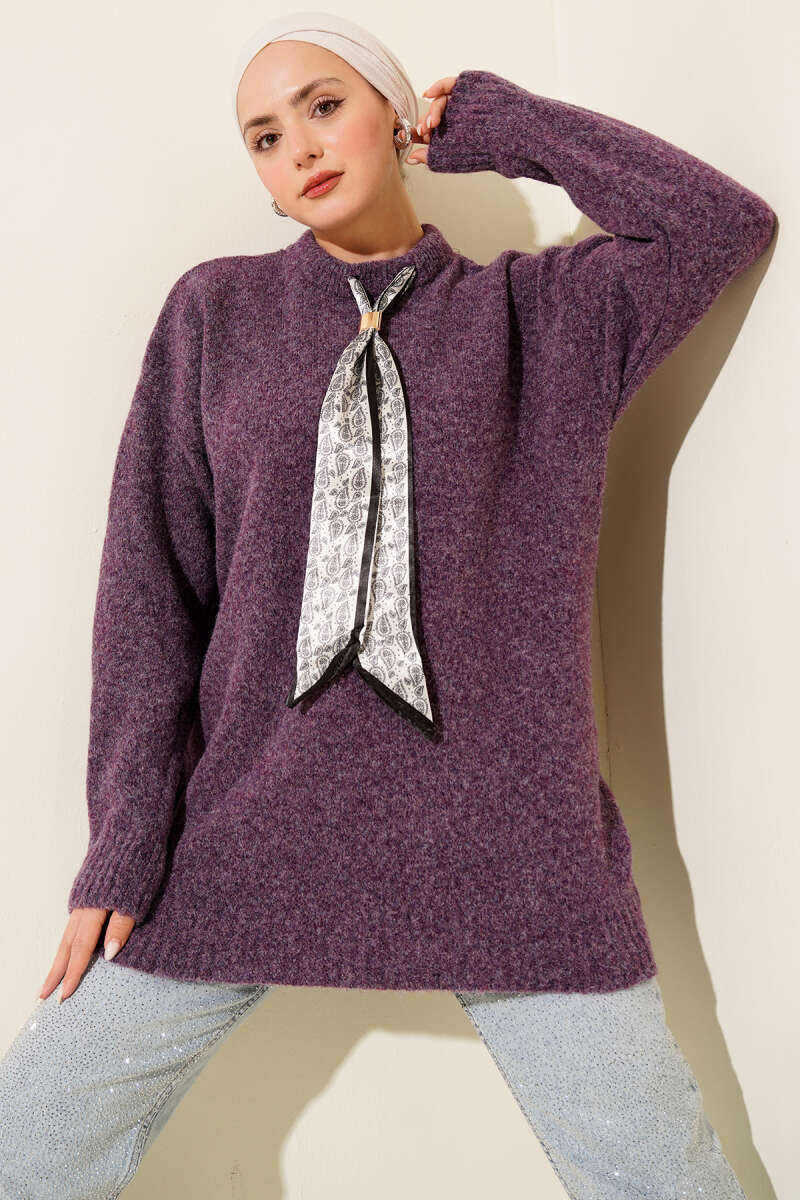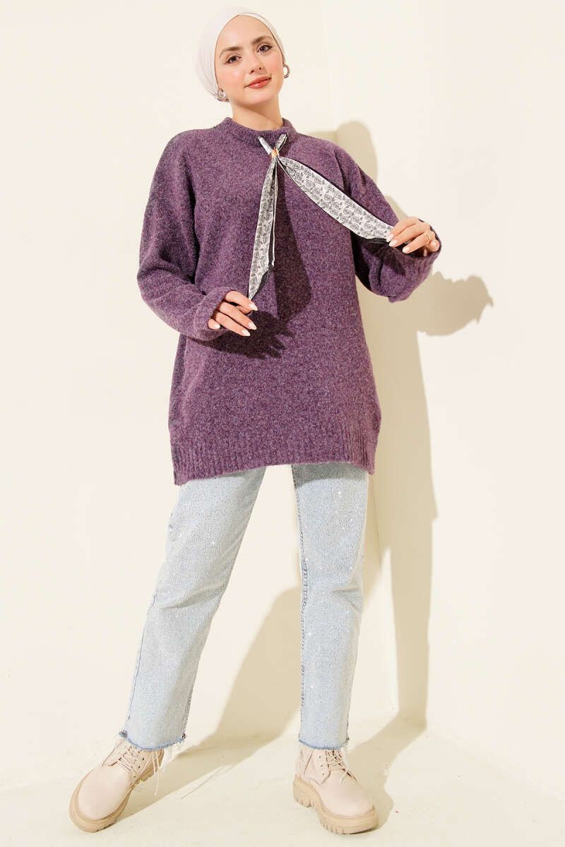 Yaka Fularlı Yumoş Triko Tunik Mint