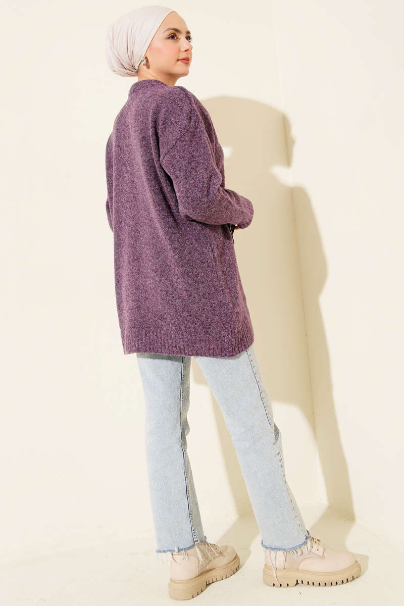 İp Bağlamalı Duble Kol Triko Tunik Bordo