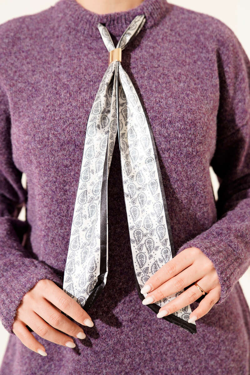 Yaka Fularlı Yumoş Triko Tunik Siyah