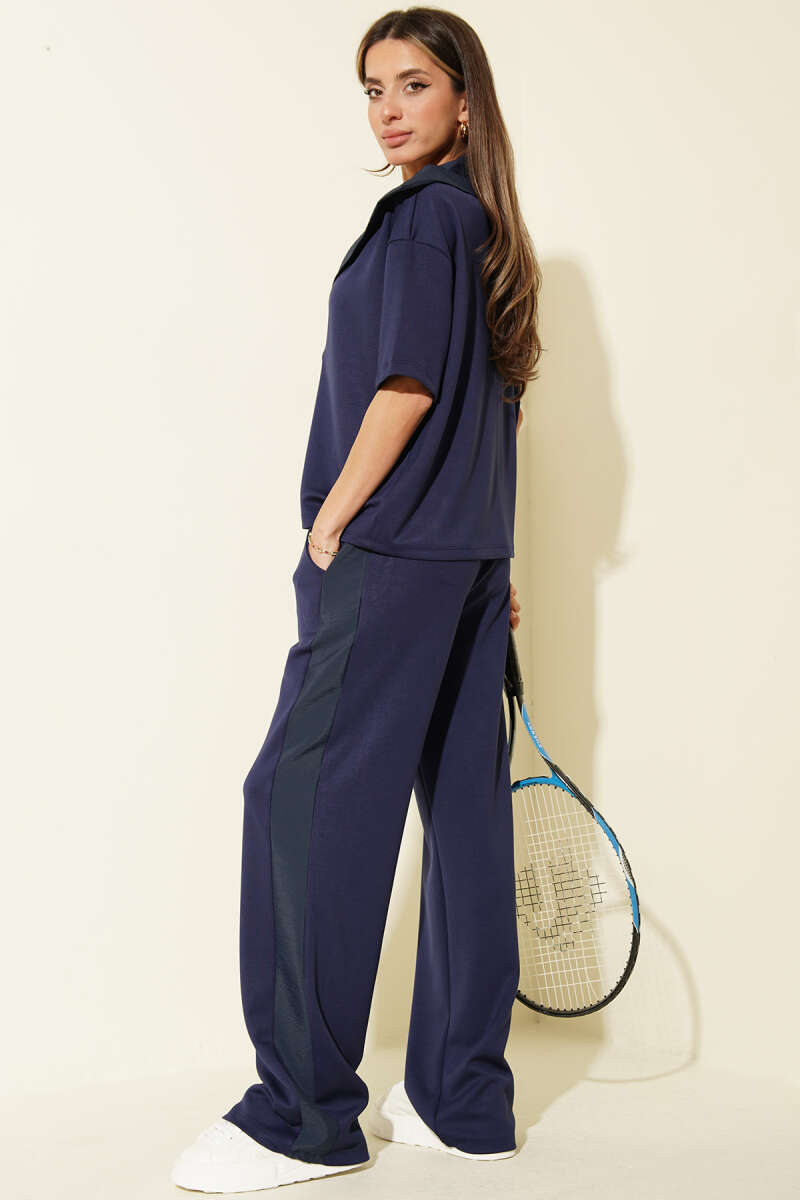 Yaka Garnili Kısa Kol Loyşa İkili Takım Lacivert