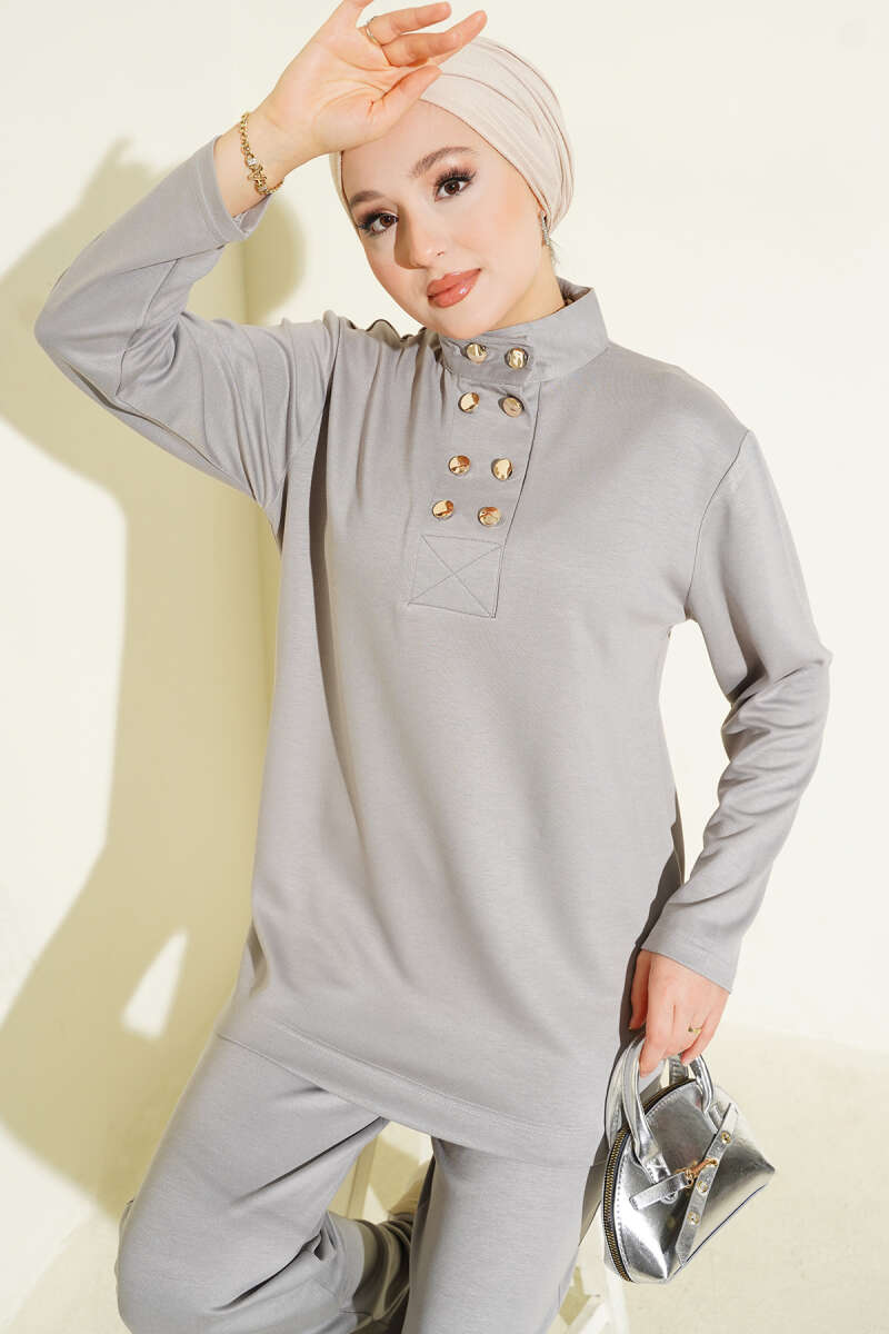 Yaka Gold Düğmeli Loyşa İkili Takım Siyah