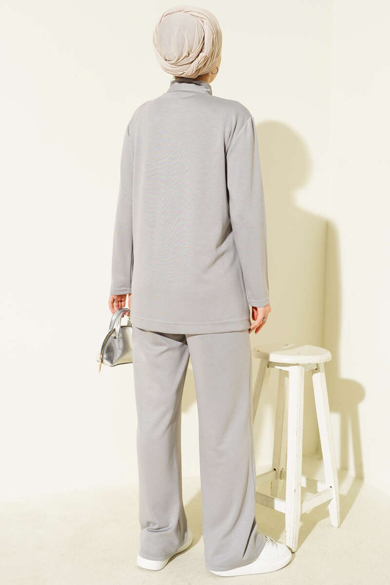 Önü Minik Taşlı Scuba İkili Takım Vizon