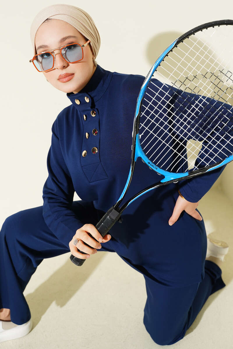 Önü Minik Taşlı Scuba İkili Takım Lacivert