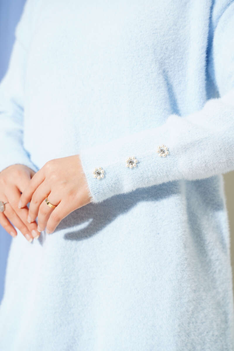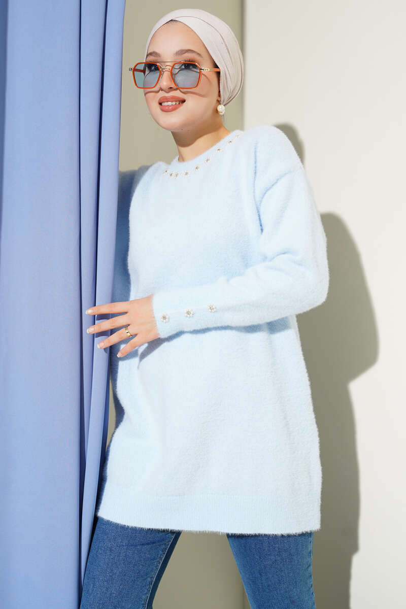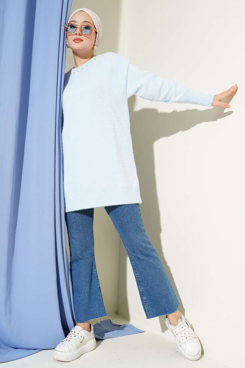 Yaka İncili Sakallı Tunik Bebe Mavi