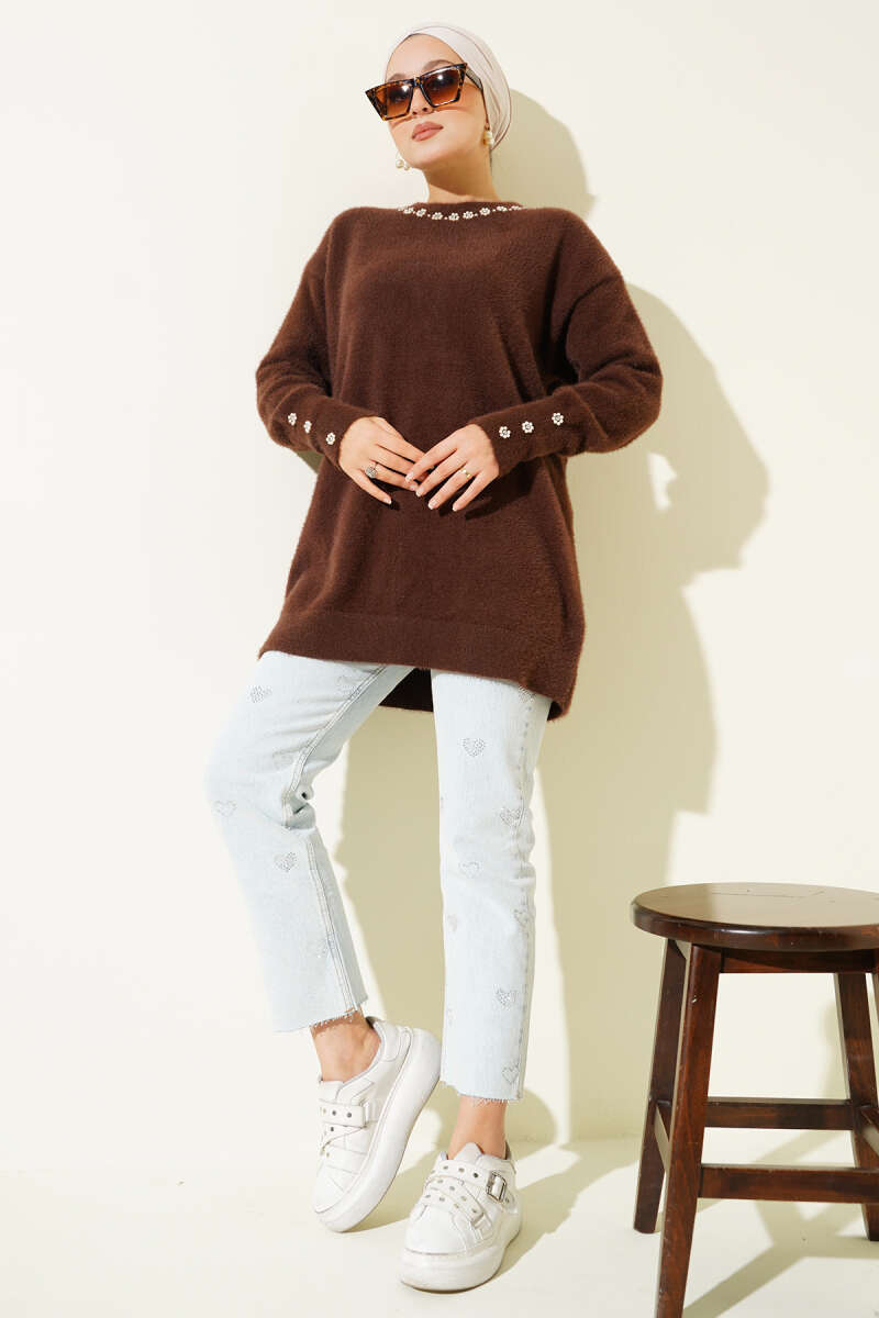 Yaka İncili Sakallı Tunik Kahve