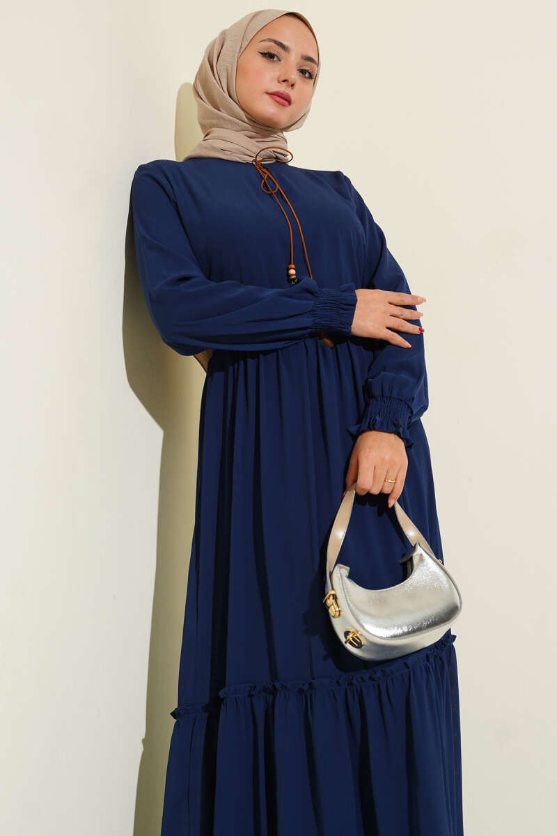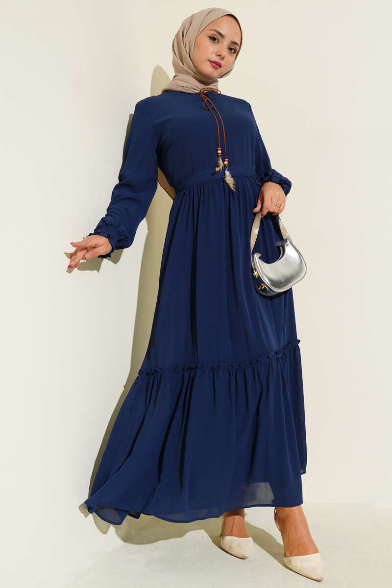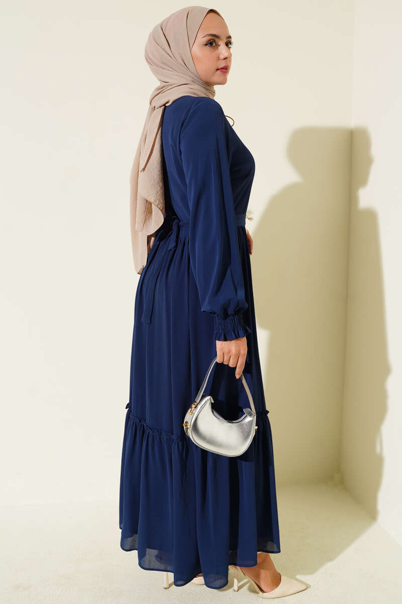 Sıra Taşlı Balon Kol Abiye Elbise Bebe Mavi