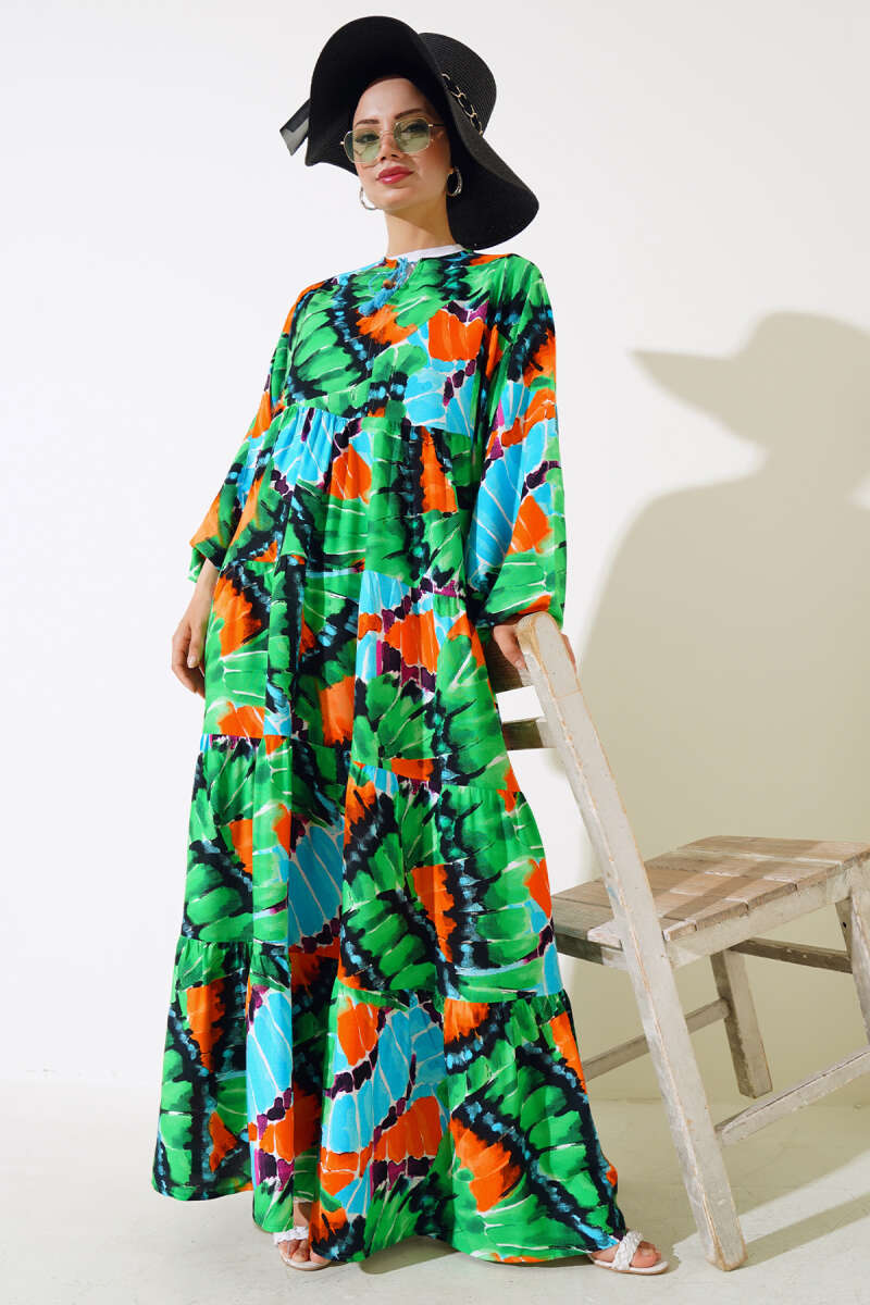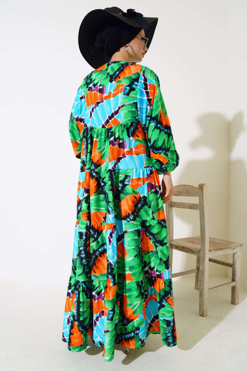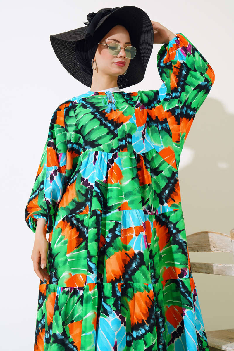 Yaka İpli Yarasa Kol Elbise Yeşil