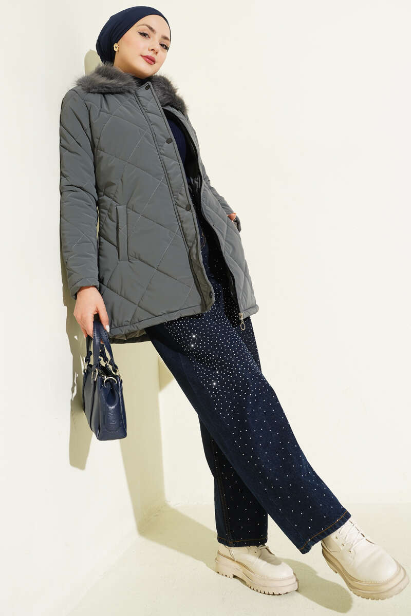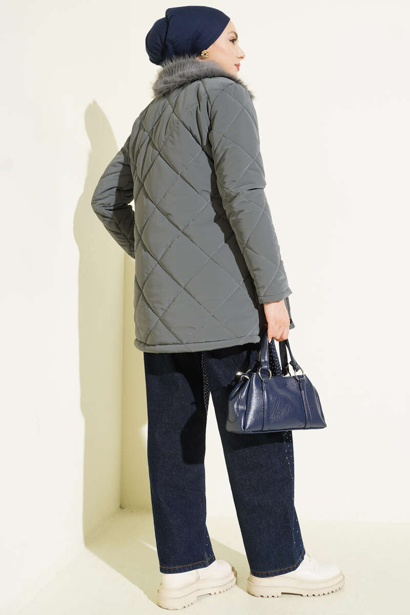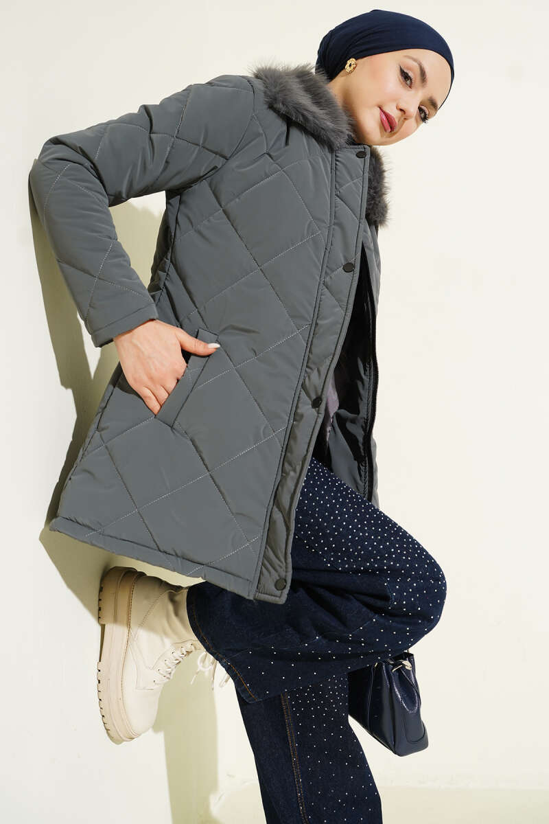 Baklava Desen Bel Tünelli Kapitone Mont Füme