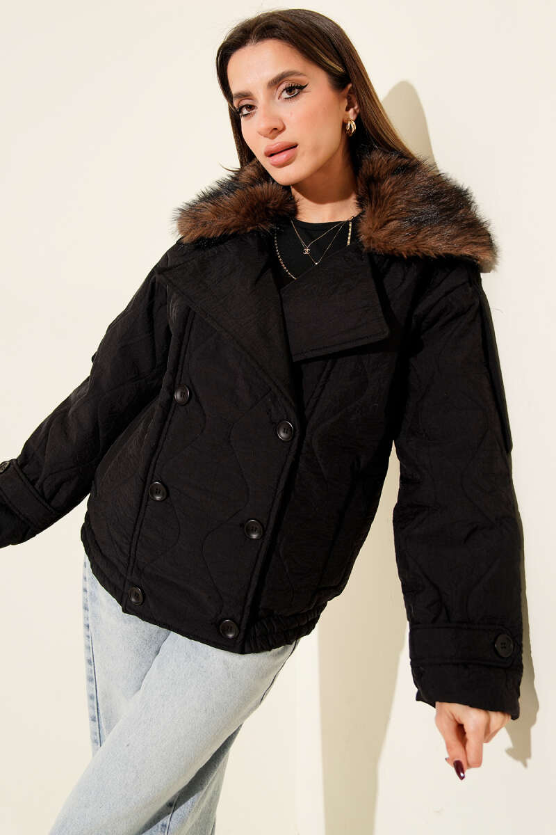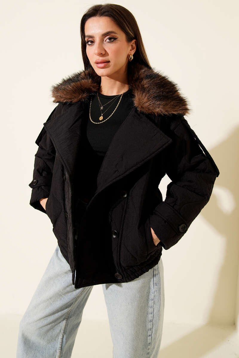 Bisiklet Yaka Sakal Detaylı Kazak Siyah