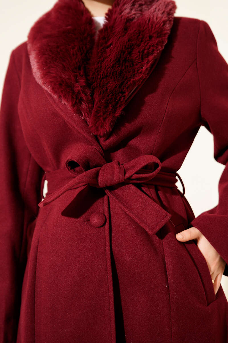 Fitilli Kuşaklı Kaşe Kaban Siyah