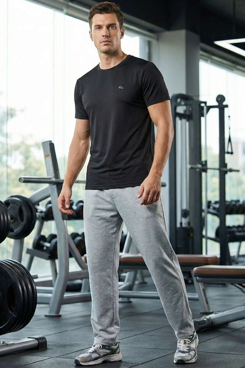 Yaka Logolu Erkek Sporcu T-shirt Gri