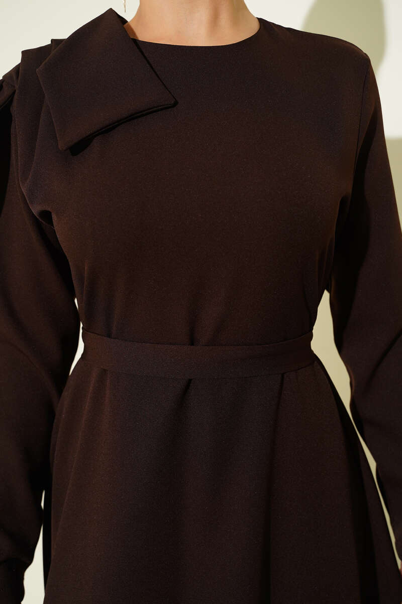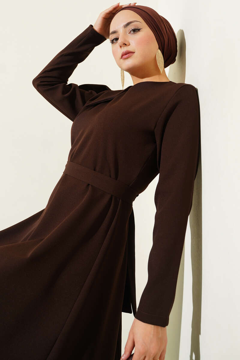 Bel Bağcıklı Bisiklet Yaka Triko Elbise Haki