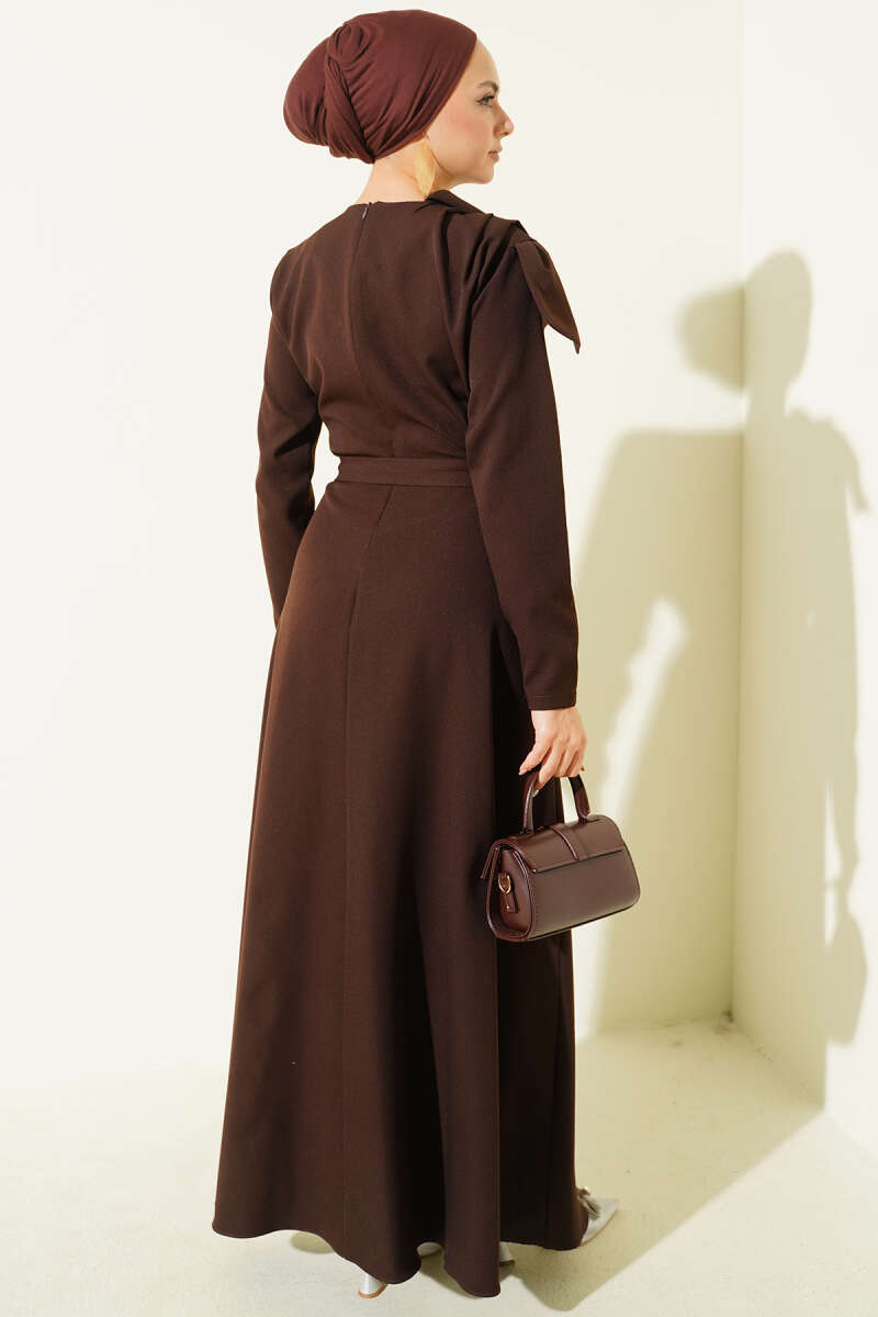 Yaka Parça Detaylı Abiye Elbise Bordo