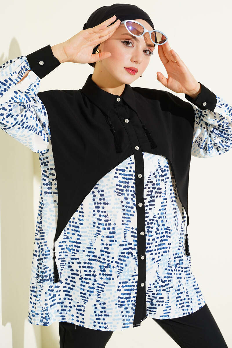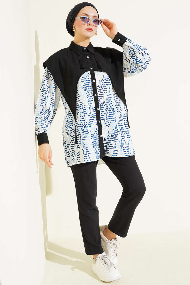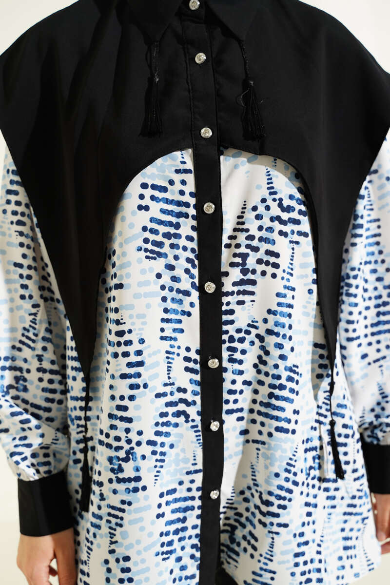 Yaka Parçalı Desenli Gömlek Siyah