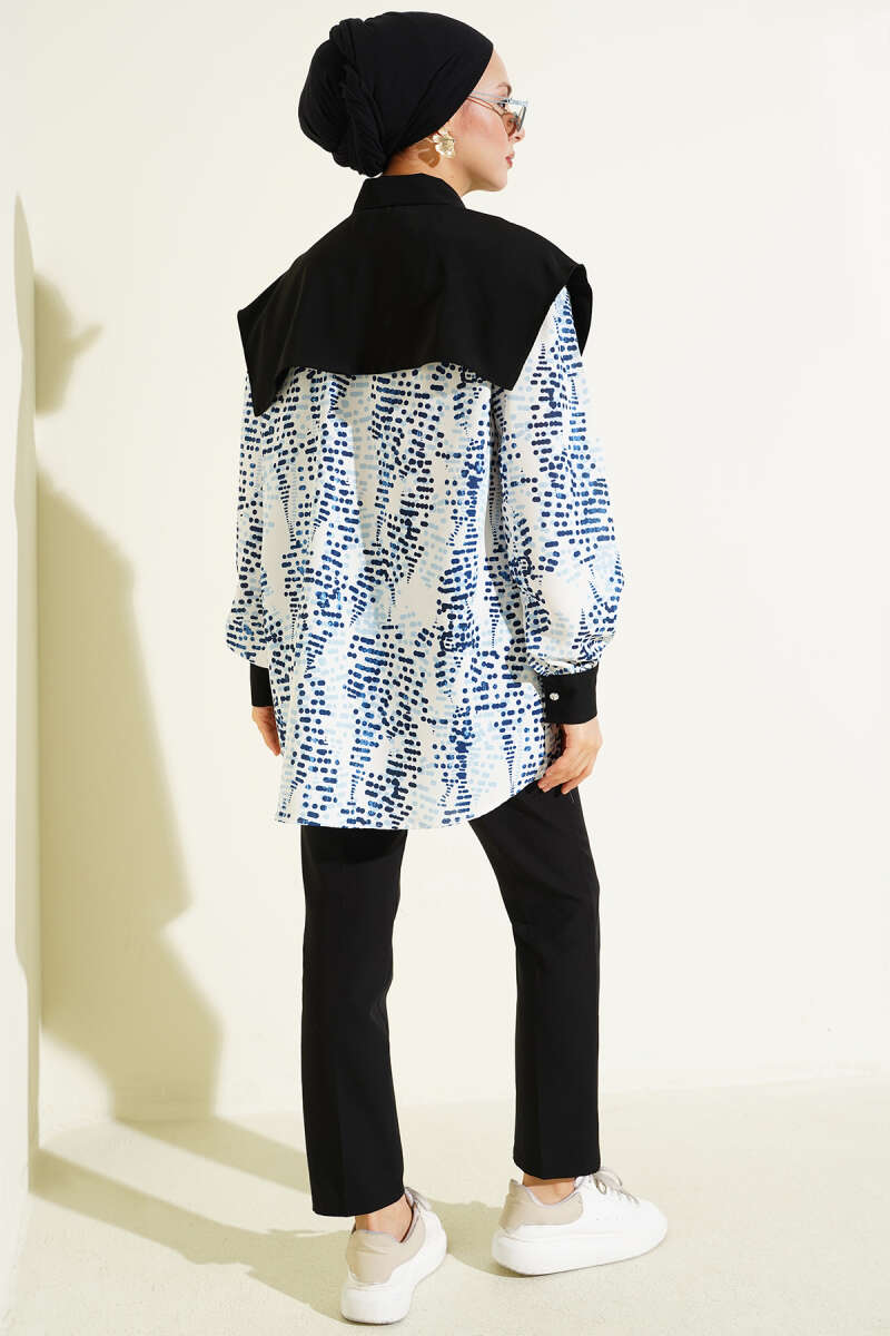 Yaka Parçalı Desenli Gömlek Lacivert