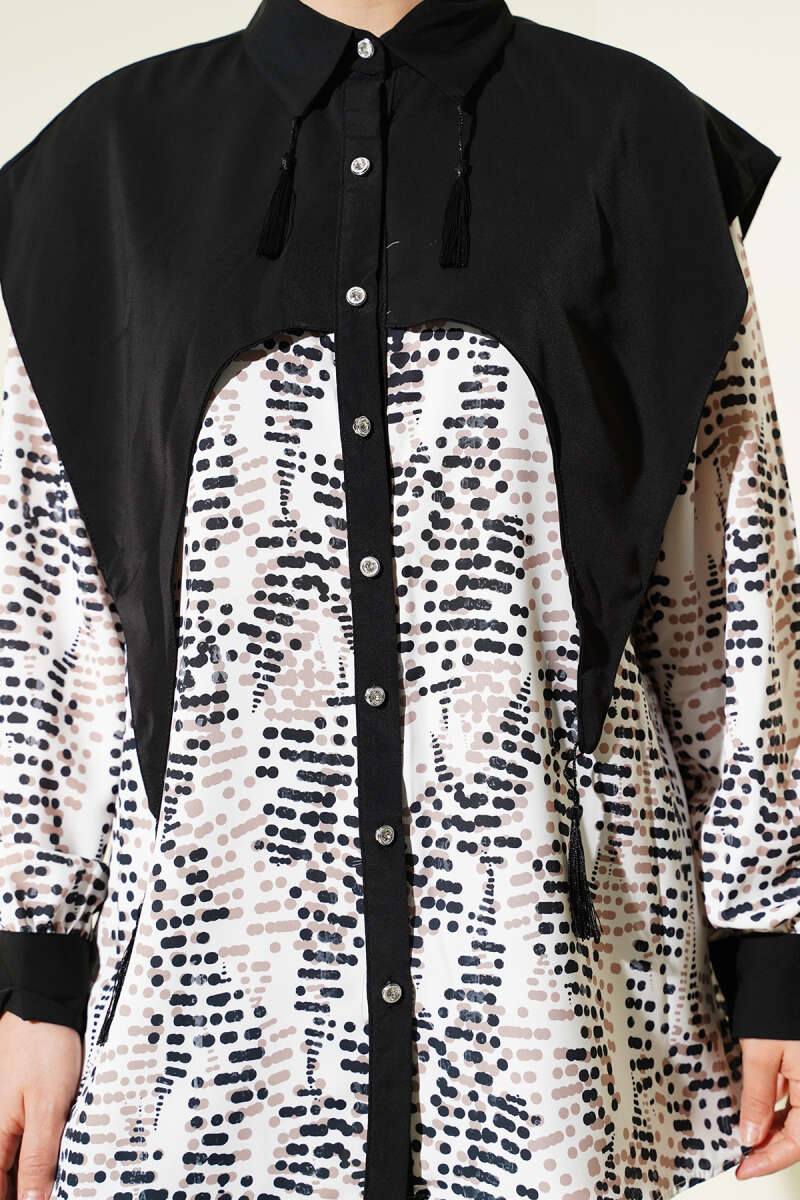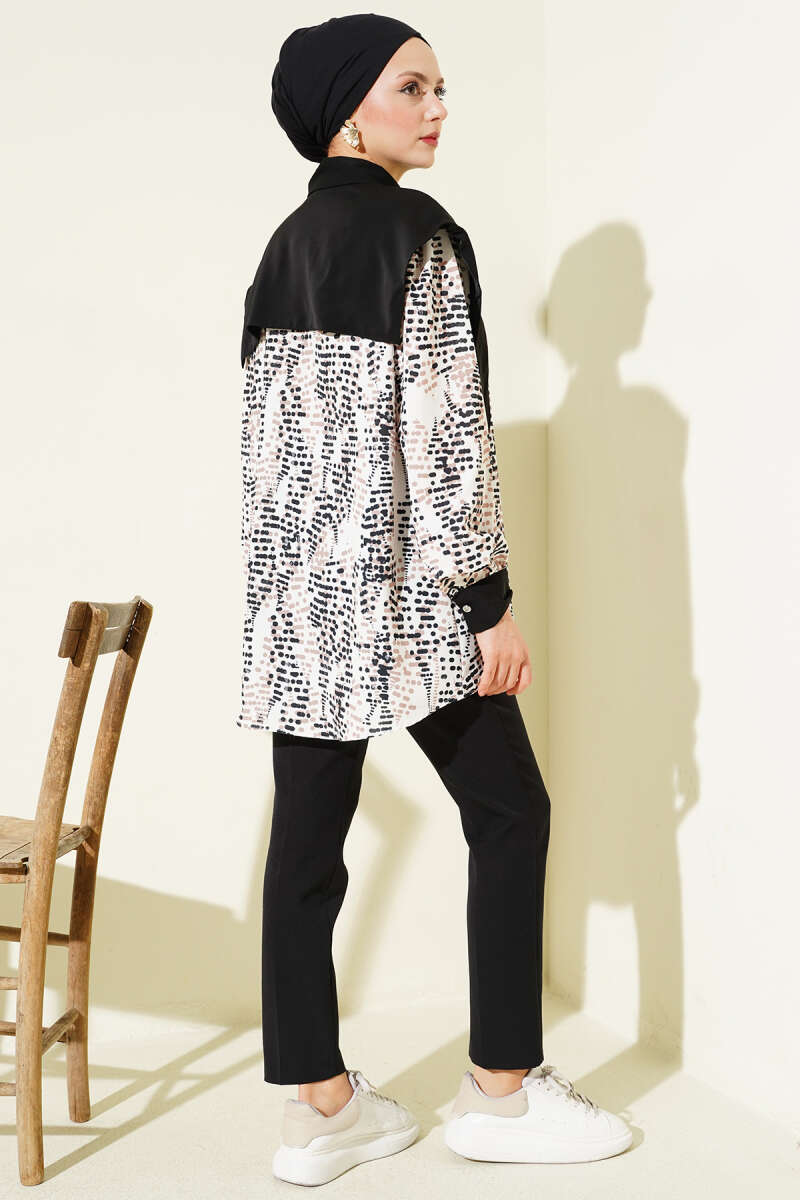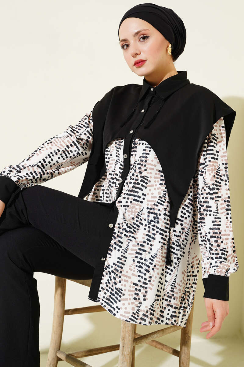 Yaka Parçalı Desenli Gömlek Siyah