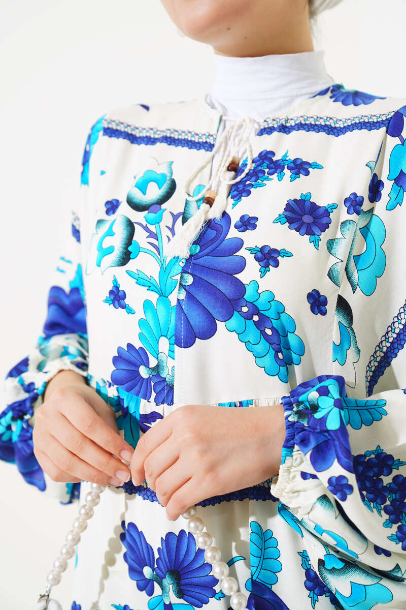 Bilek Bağlamalı Kuşaklı Abiye Elbise Lacivert