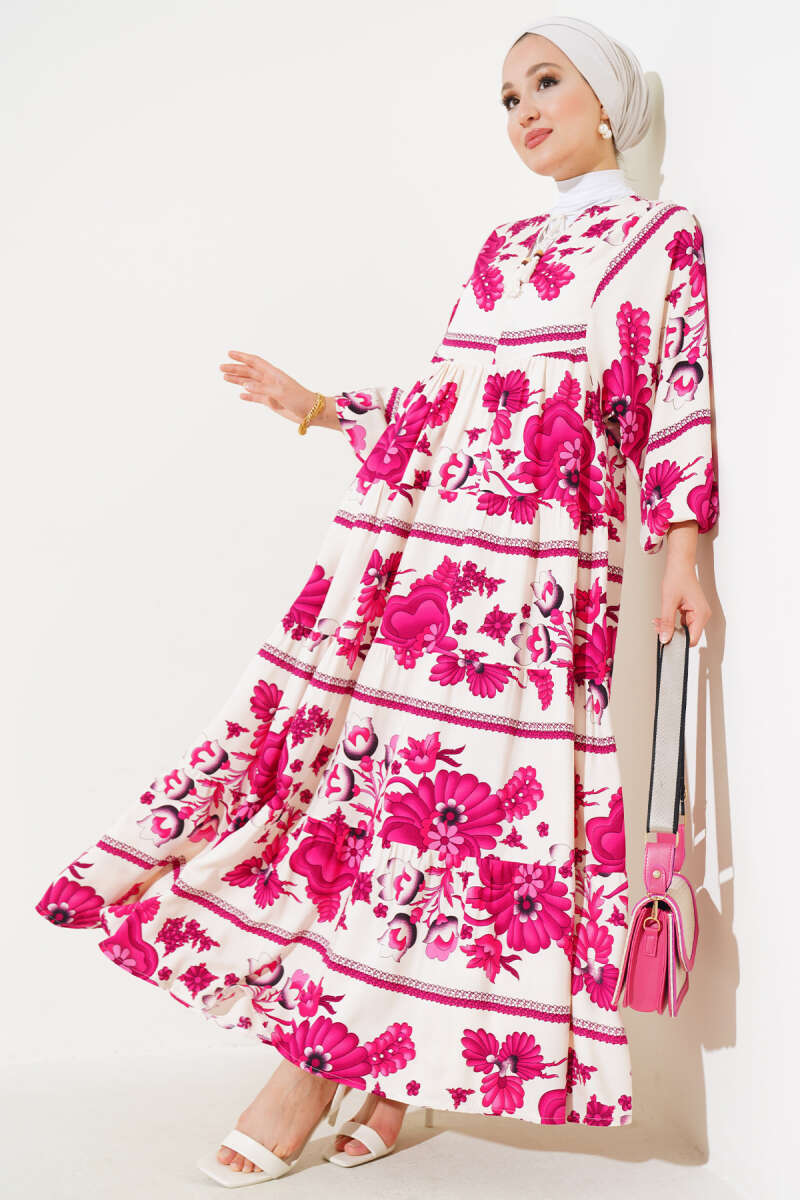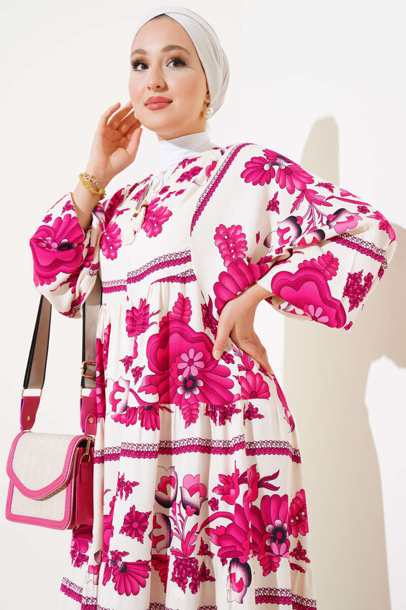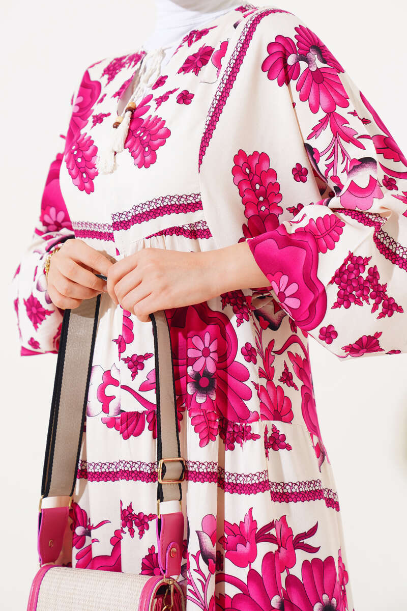 Çift İp Kuşaklı Ekoseli Elbise Bej