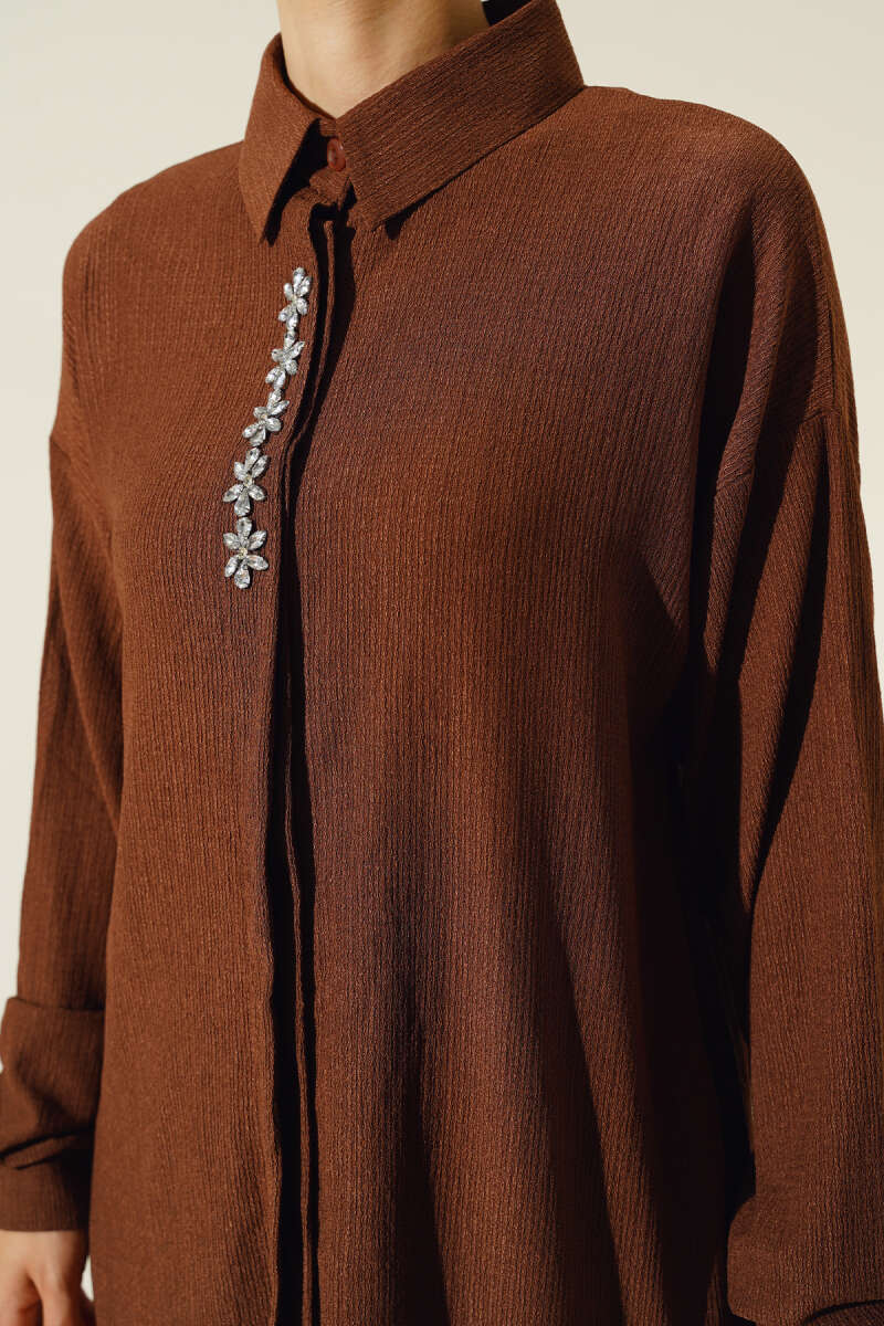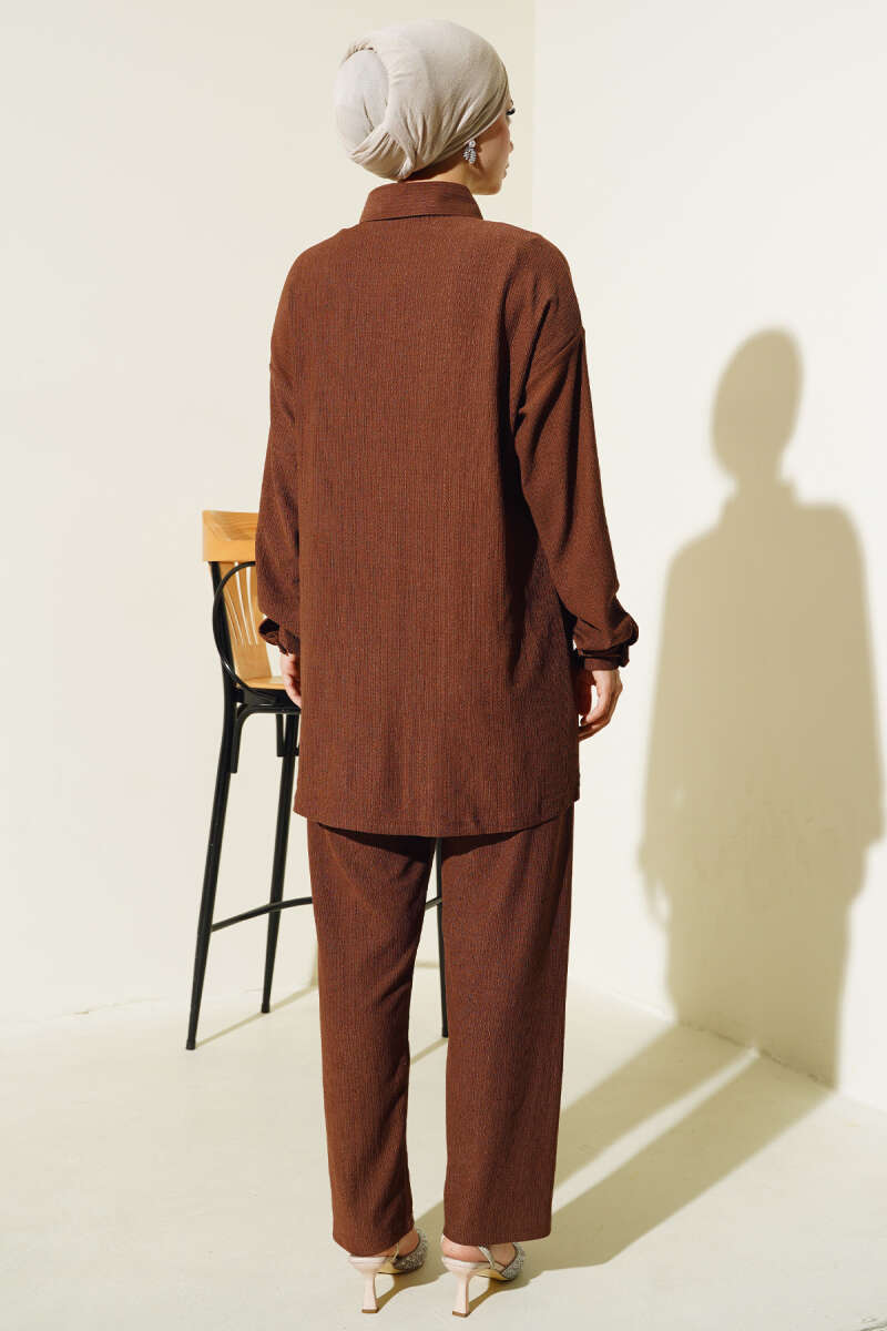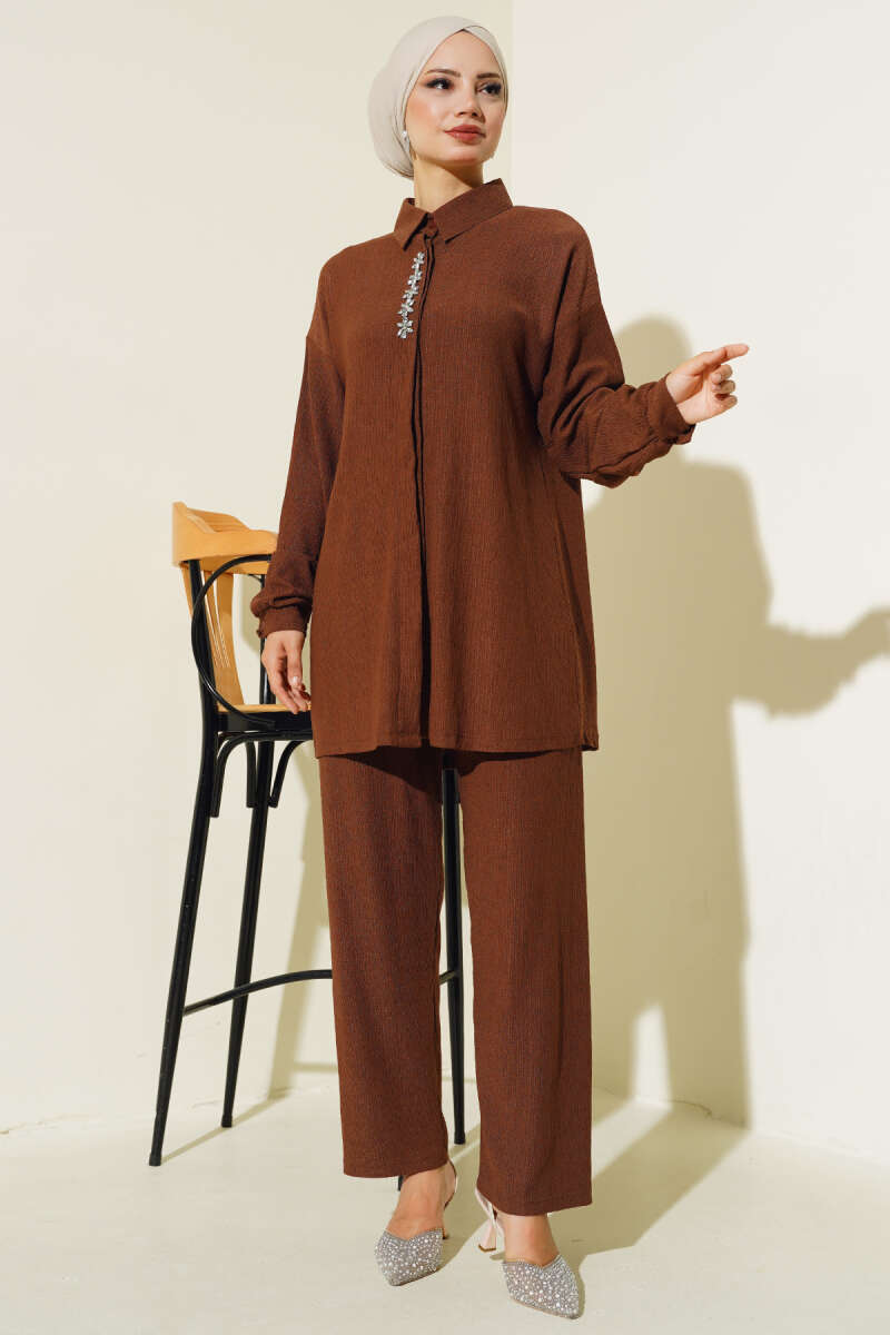 Metal Düğmeli Kemerli İkili Takım Kahve