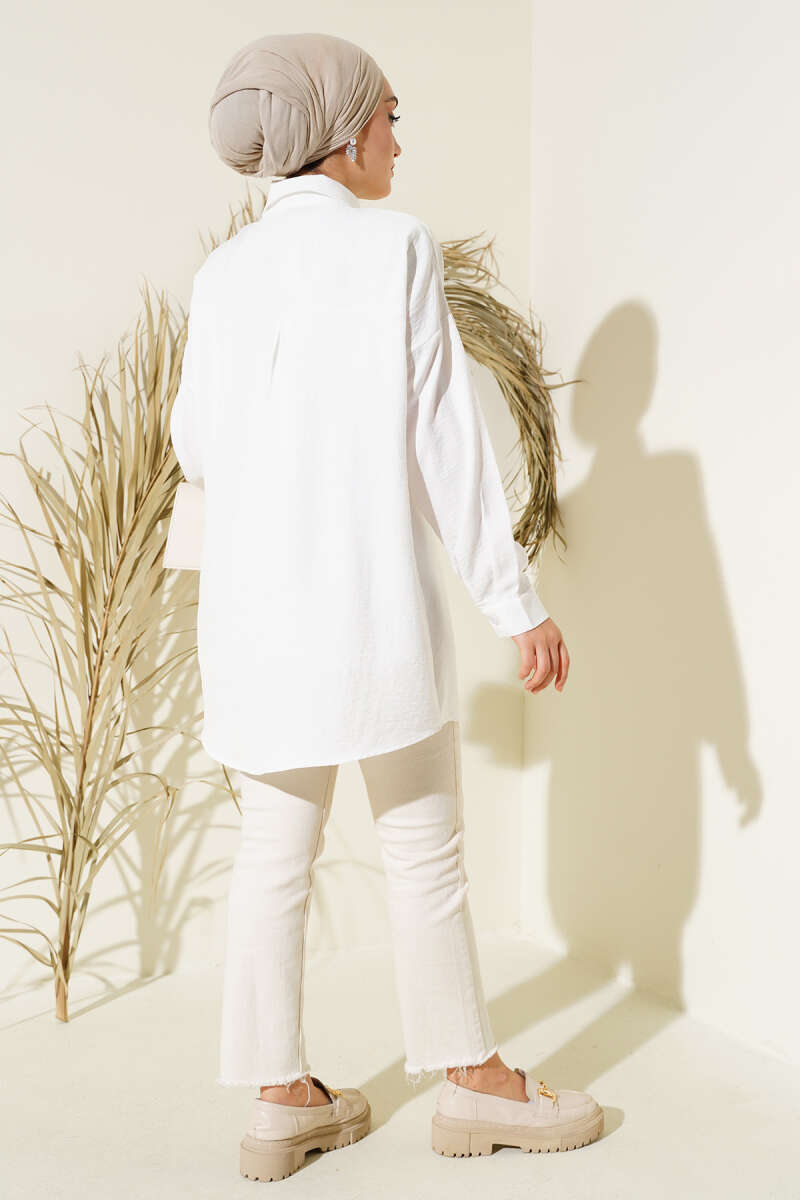 Fırfırlı Pelerin Detaylı Kısa Gömlek Ekru