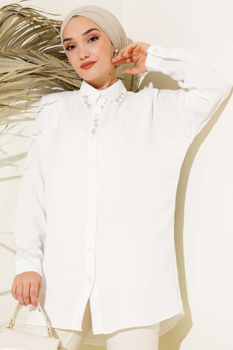 Manşet Düğmeli Püsküllü Gömlek Vizon