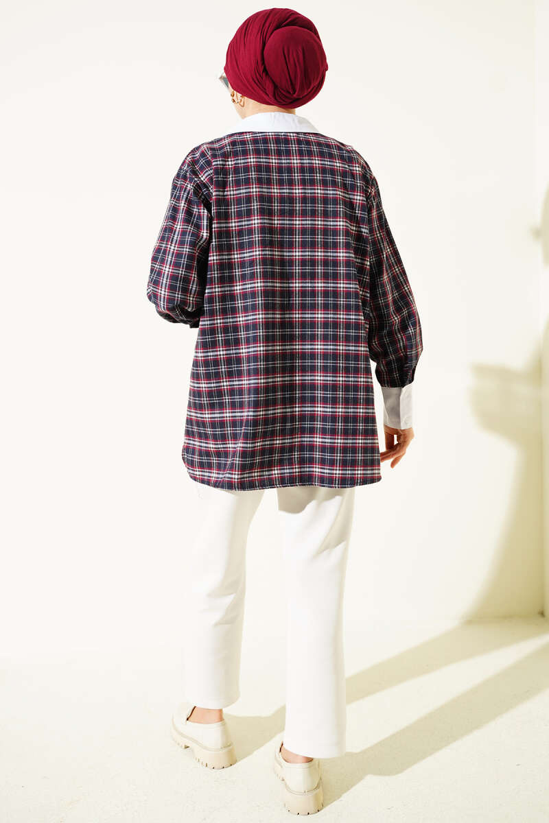 Yaka Taşlı Ekose Desen Gömlek Bordo
