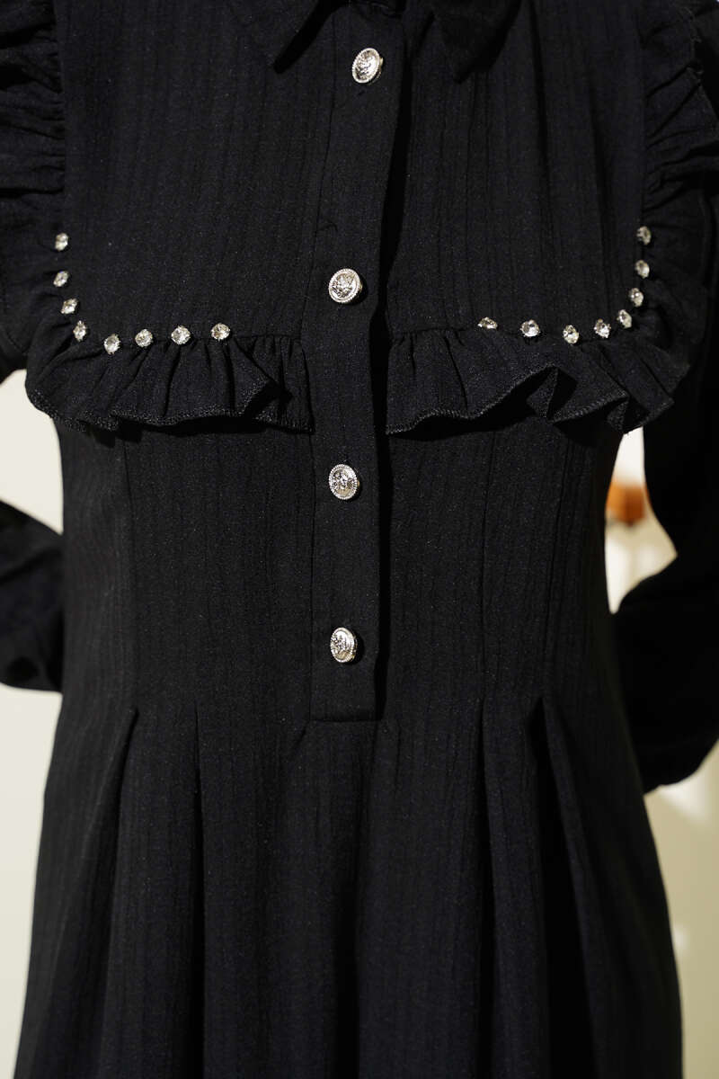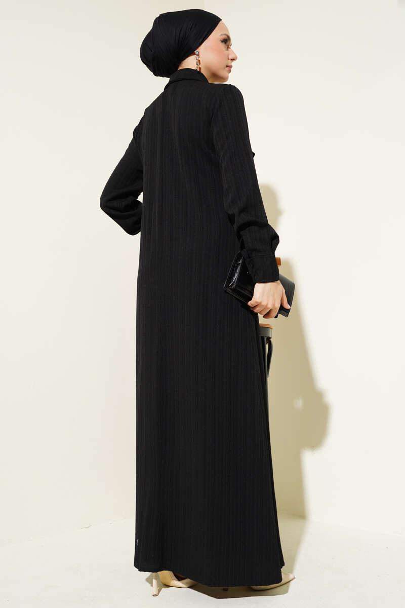 Bel Düğümlü Sandy Elbise Siyah