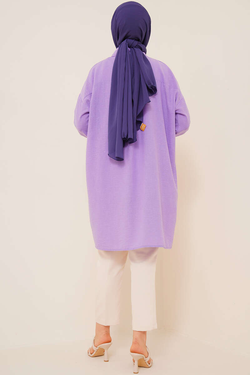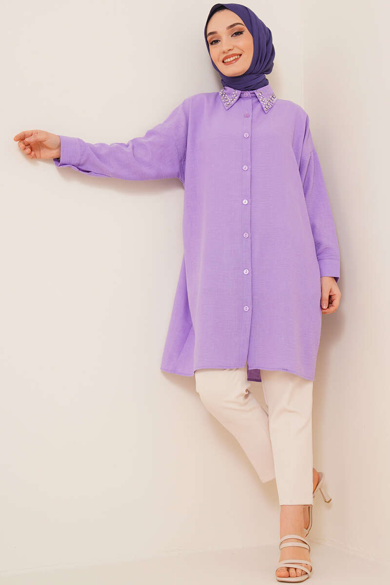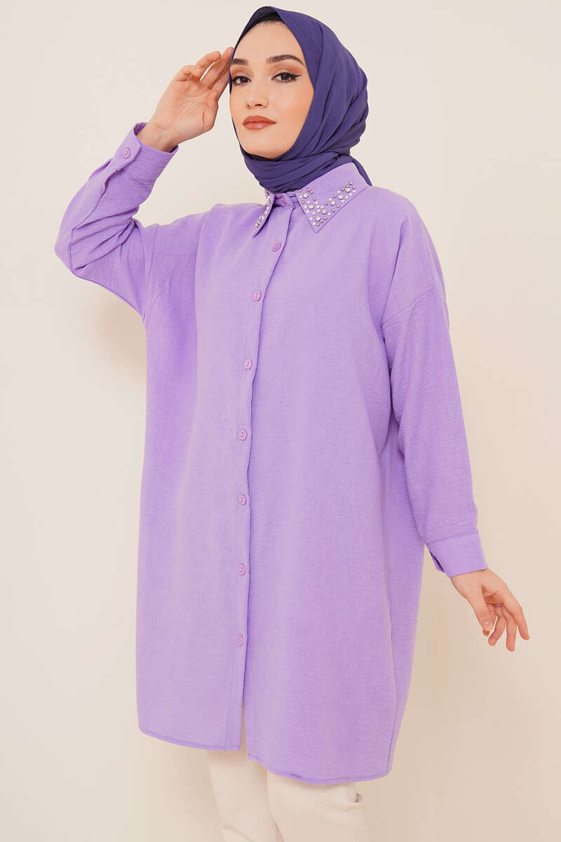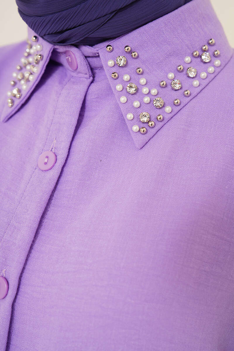 Yaka Taşlı Gömlek Lila